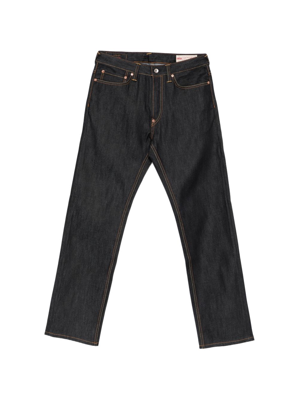 Jeans Evisu da uomo in denim indigo, caratterizzati da iconico logo gabbiano applicato sul retro, simbolo distintivo del brand giapponese.