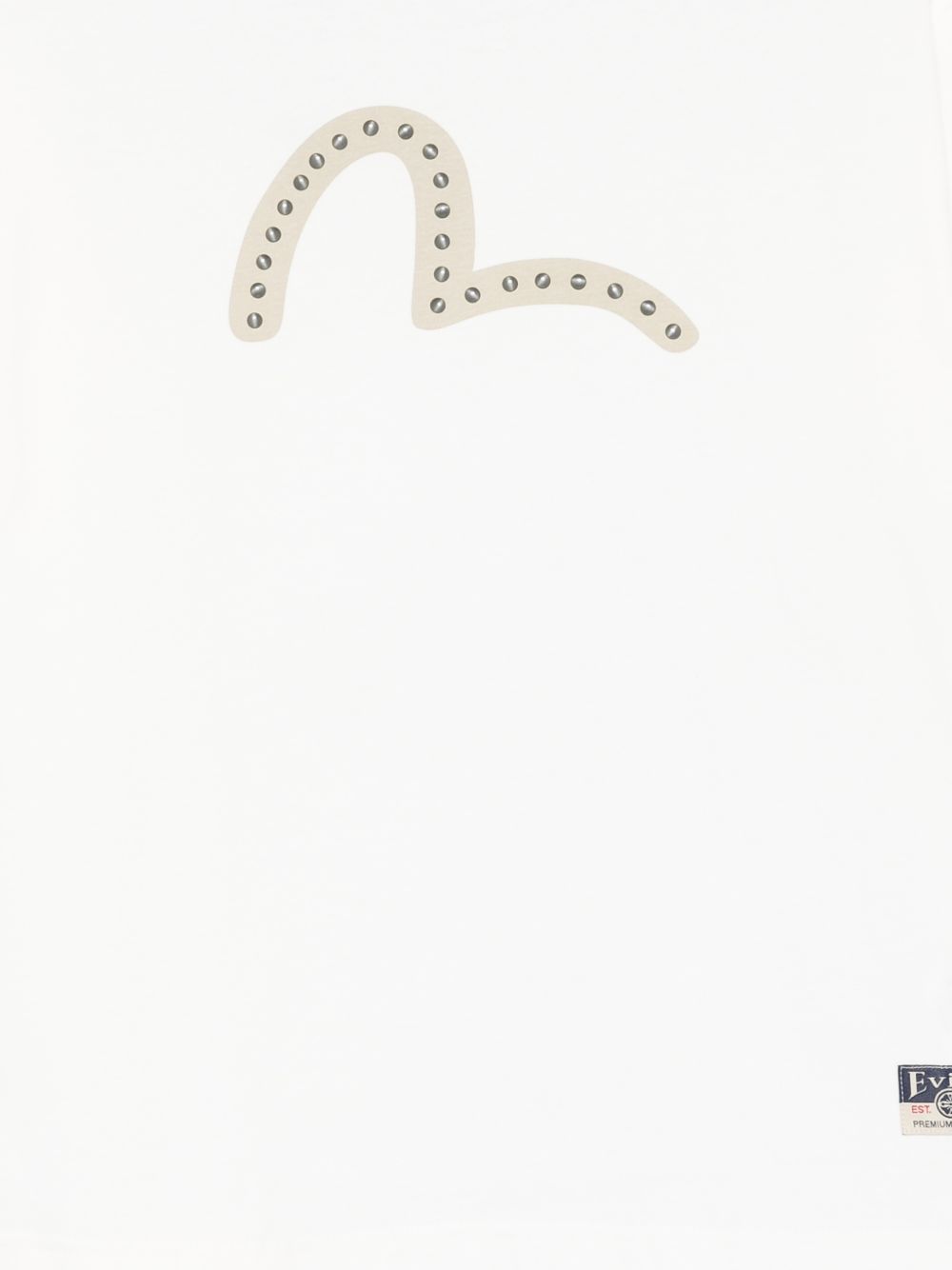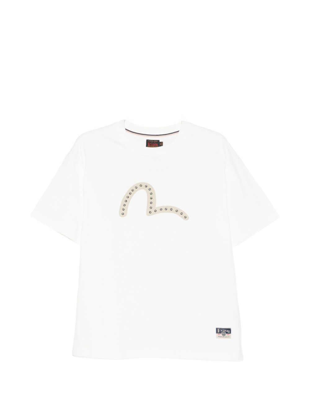 T-shirt Evisu da uomo in colore bianco con stampa logo e applicazione borchie, perfetta per outfit casual puliti ma con identità.