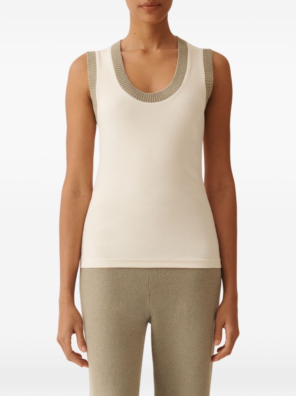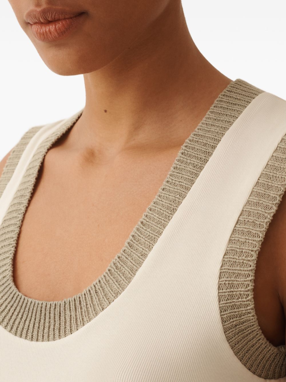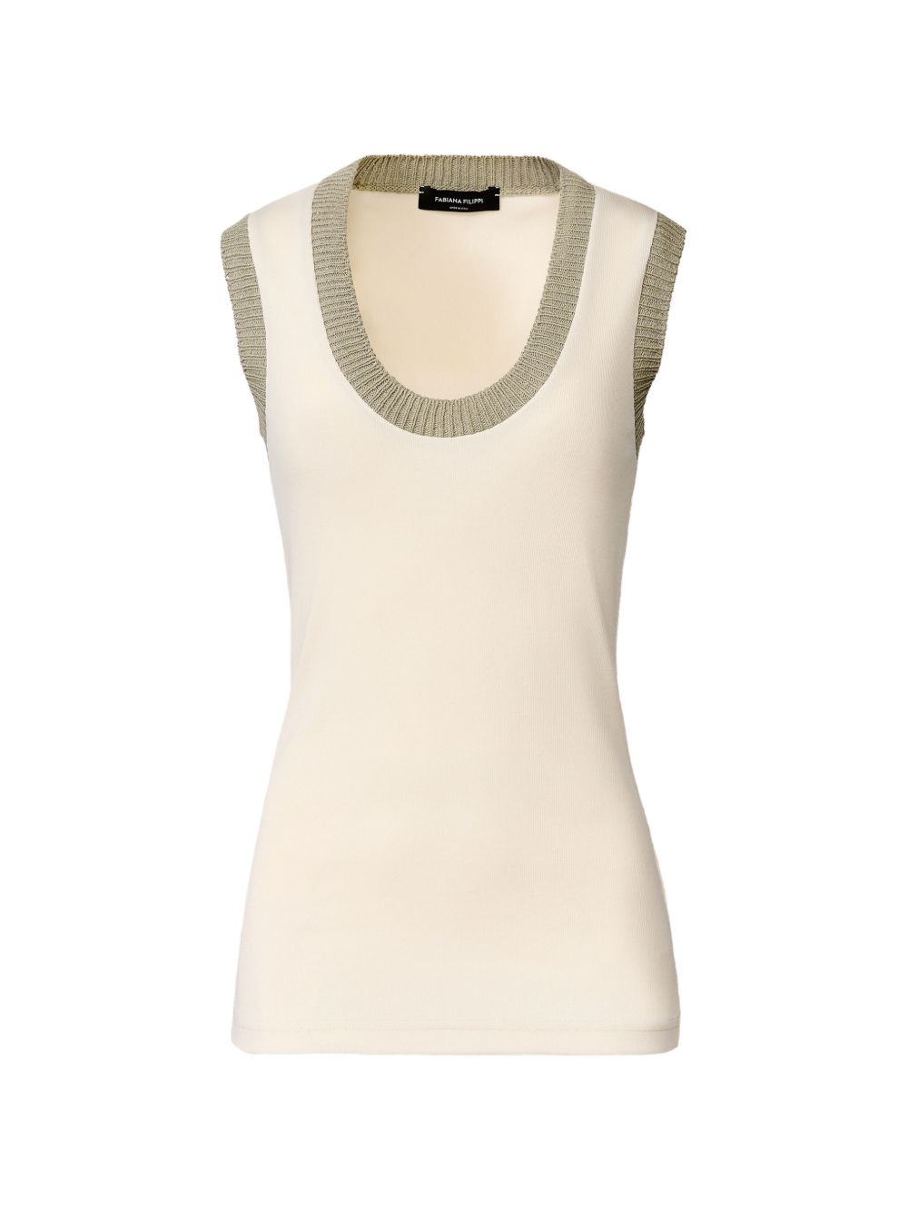 Realizzata in cotone, scollo ampio, smanicata, colletto e orli a contrasto, 94% cotone, 6% elastam