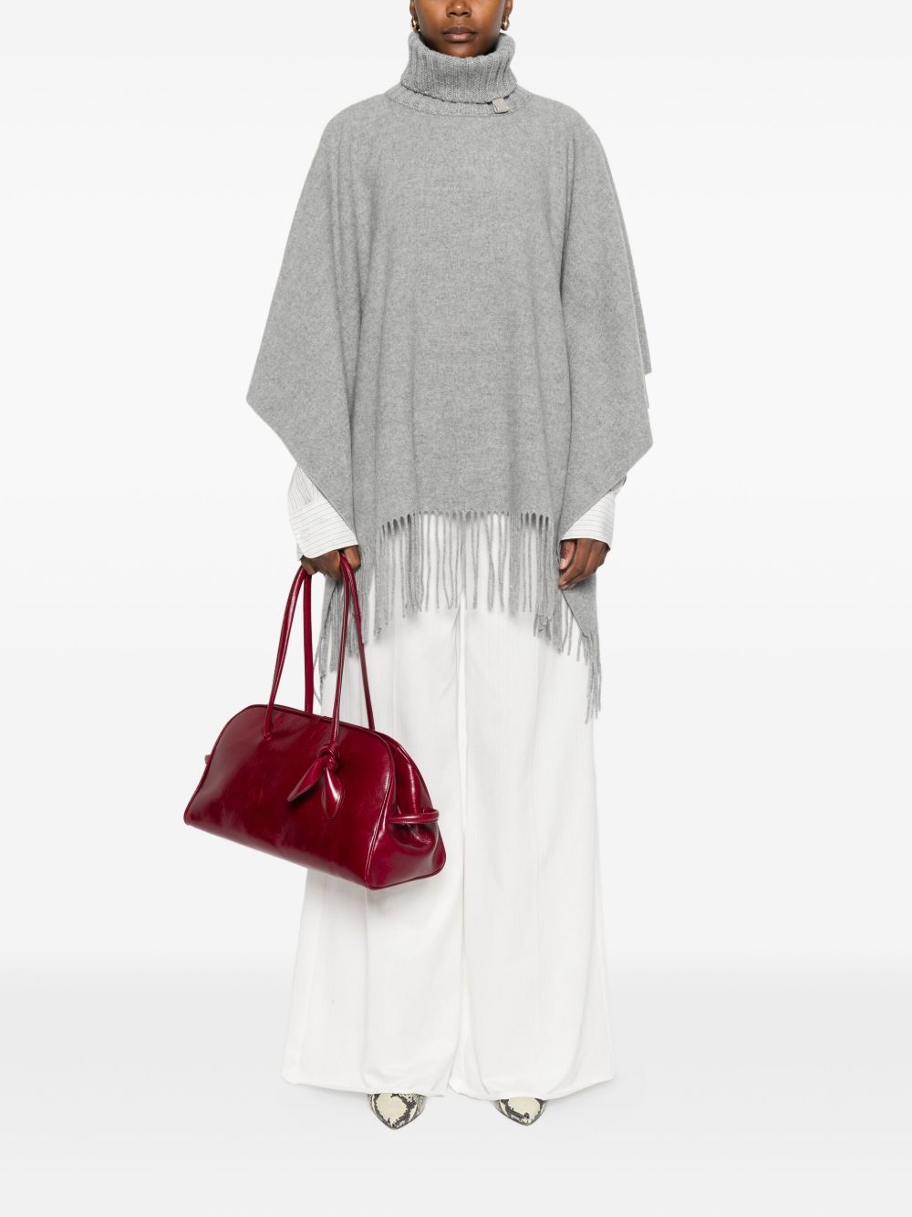 Realizzata in platinum, collo alto con risvolto, dettaglio in filo diamante, 75% lana, 15% seta, 10% cashmere