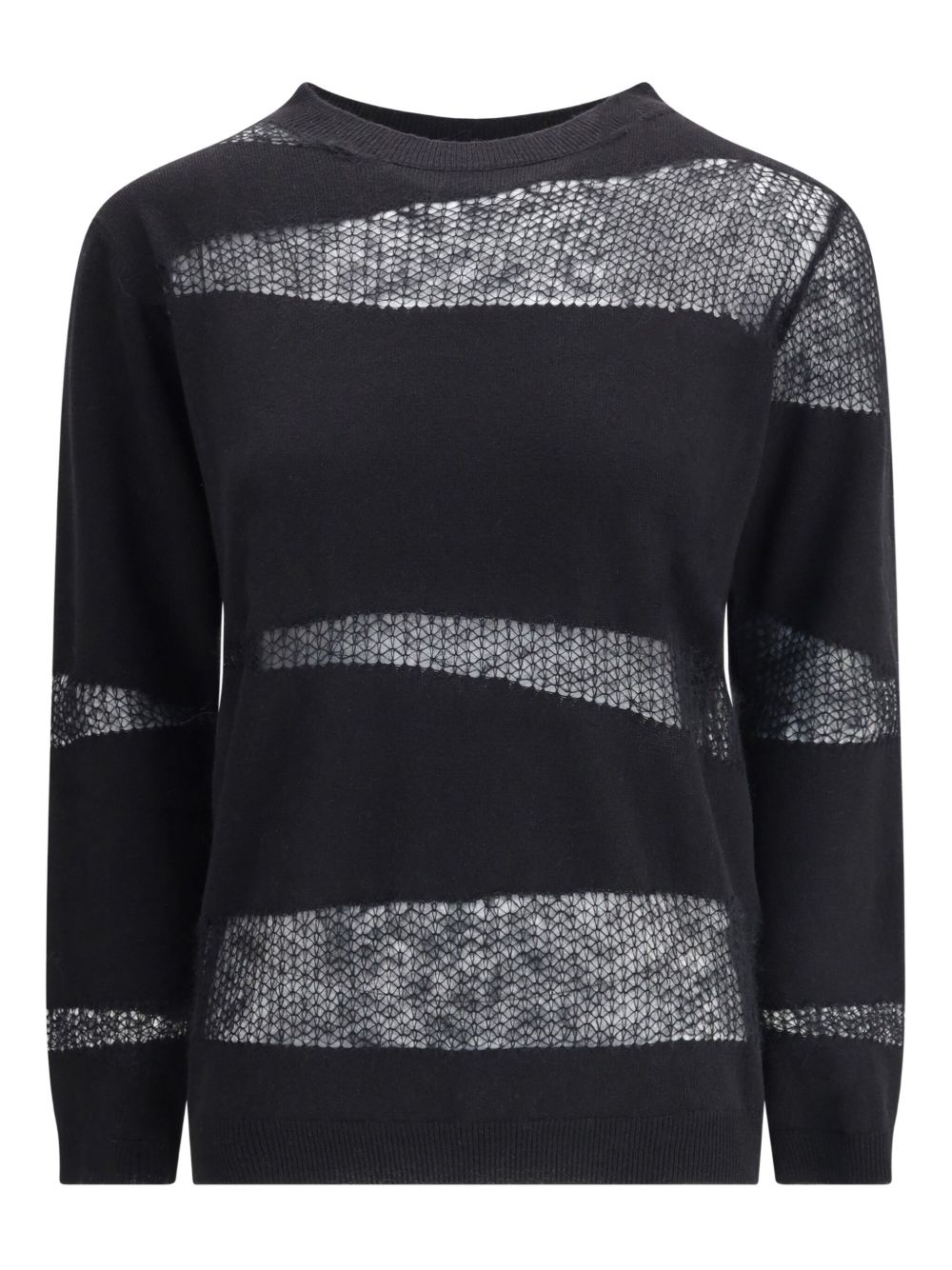 Realizzata in platinum, girocollo, inserti rete in mohair.