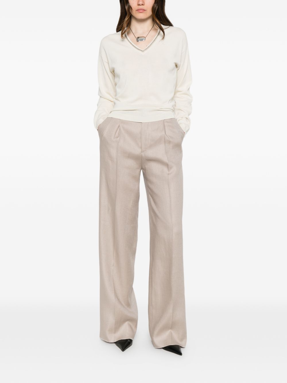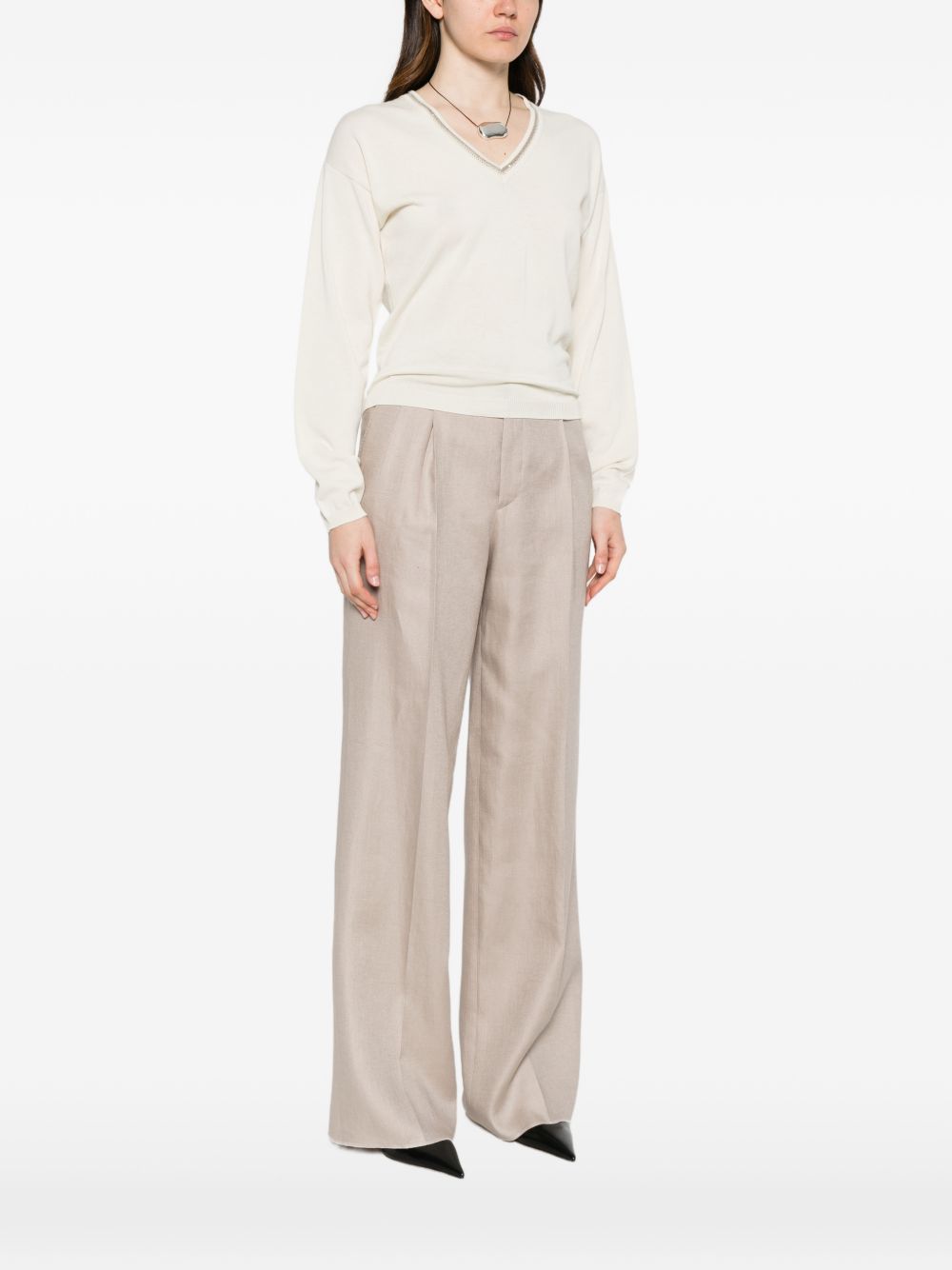 Maglia donna panna con scollo a V