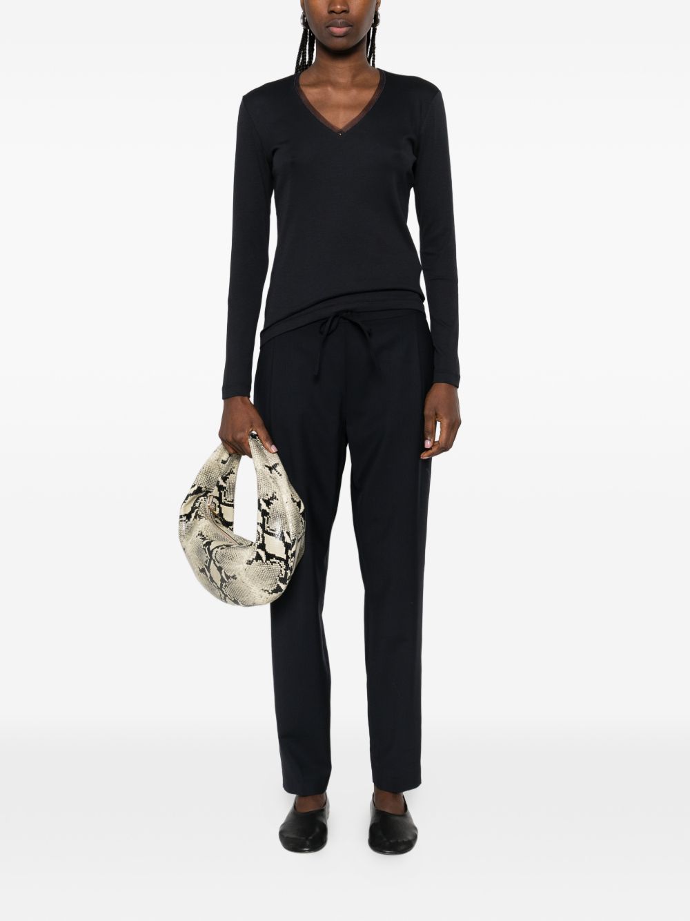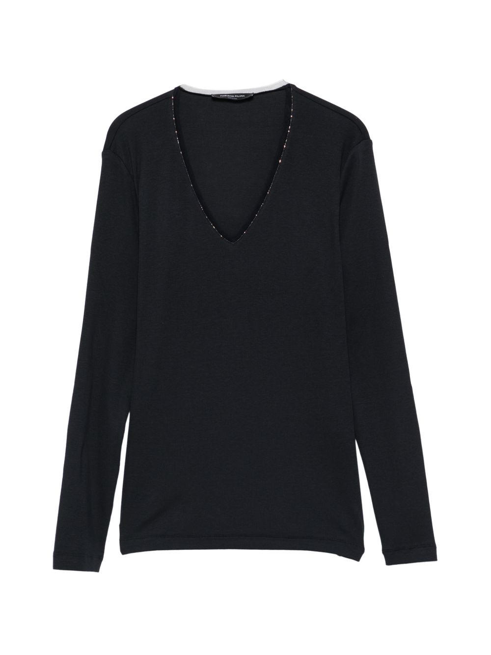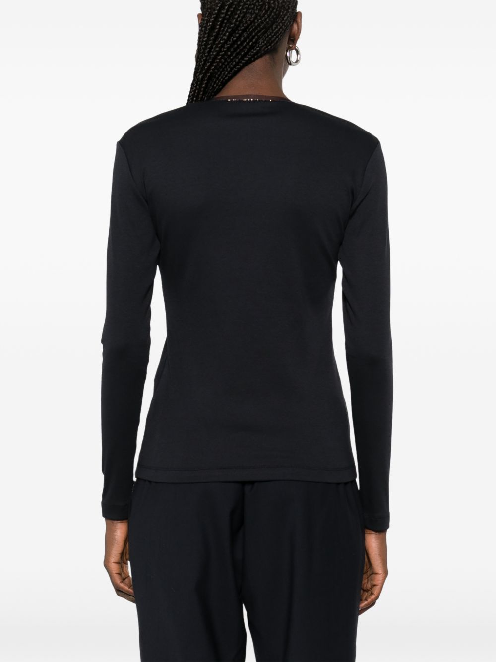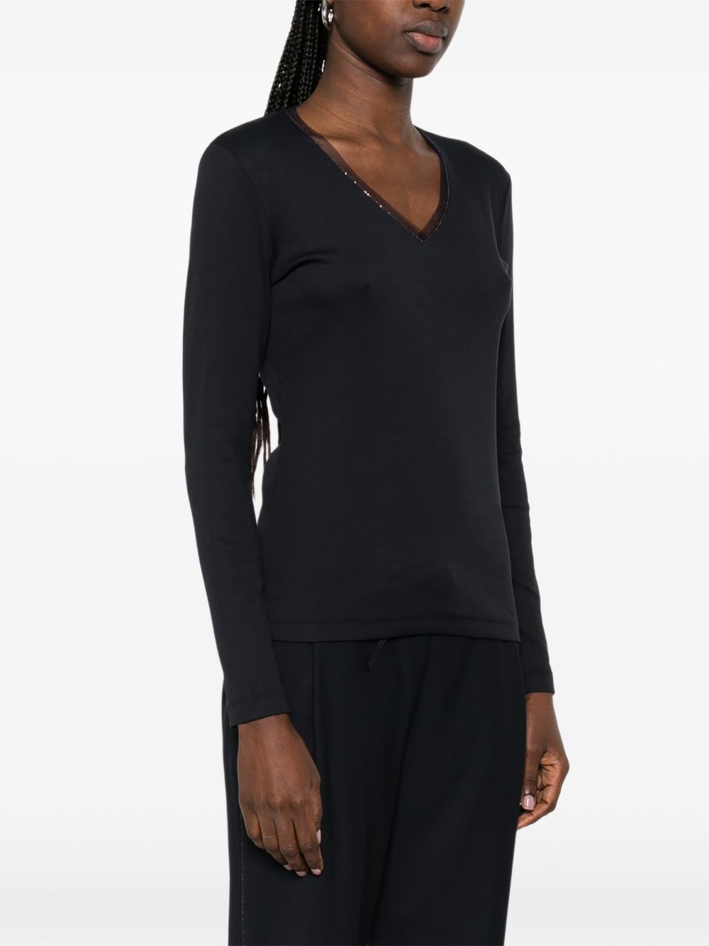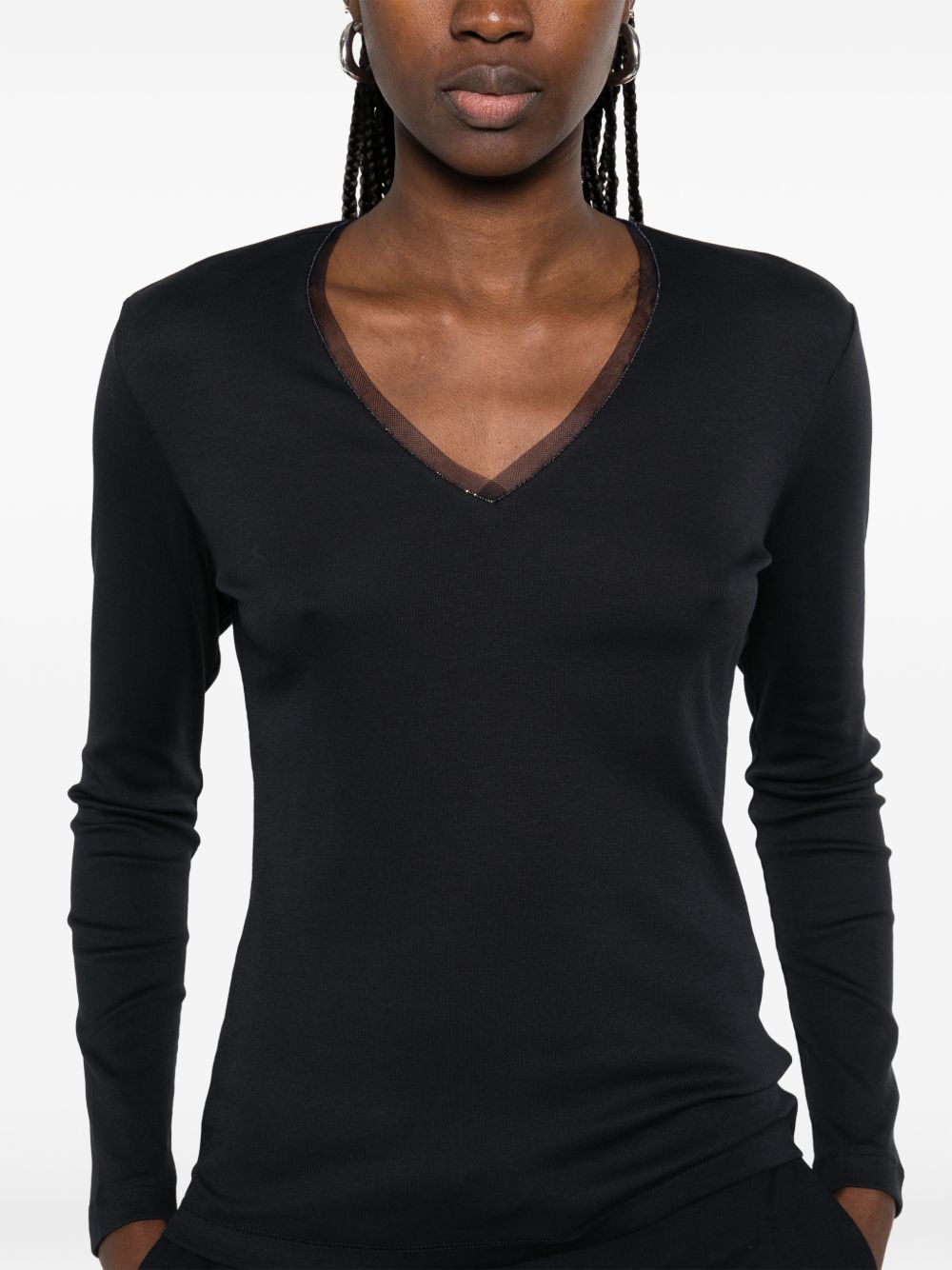 T-shirt donna nera manica lunga con scollo a V