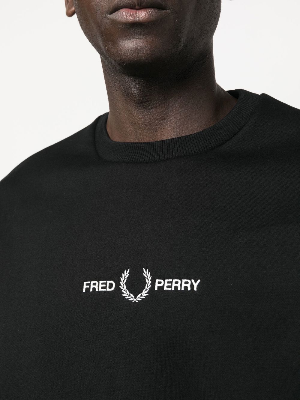 Realizzata in cotone felpato, girocollo, logo stampato e ricamato sul petto, vestibilità regolare, 66% poliestere riciclato, 34% cotone