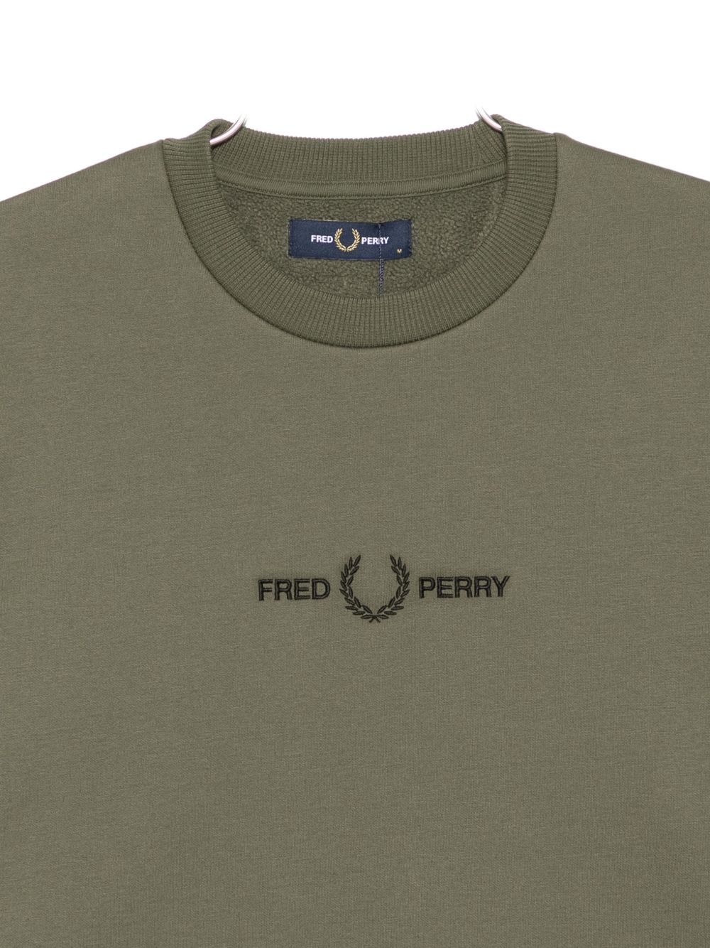 Realizzata in cotone felpato, girocollo, logo stampato e ricamato sul petto, vestibilità regolare, 66% poliestere riciclato, 34% cotone