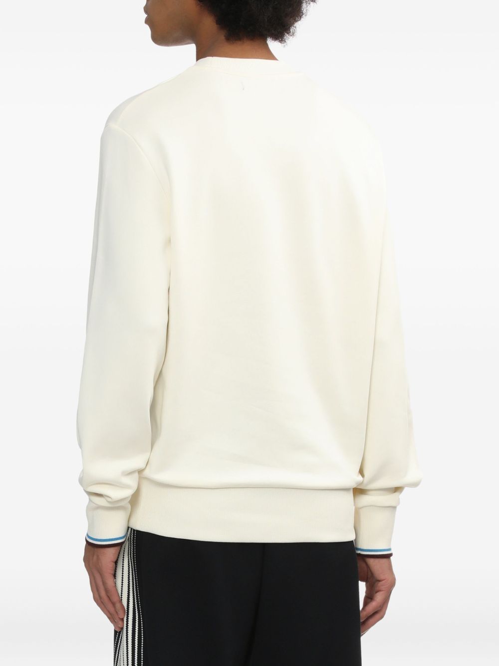 Realizzata in cotone, logo ricamato sul petto, scollo rotondo, maniche lunghe, orlo e polsini con doppia riga a coste, 100% cotone