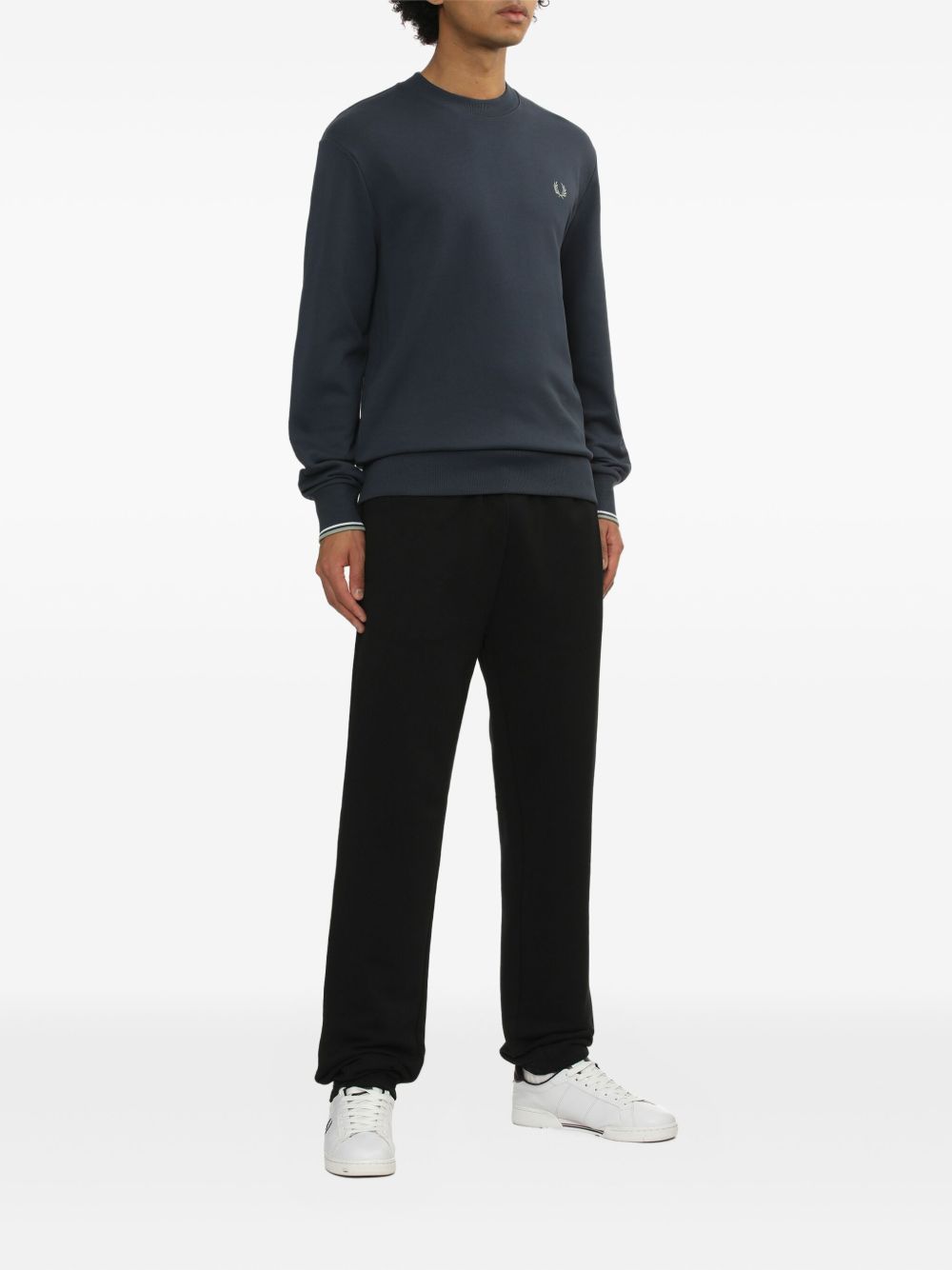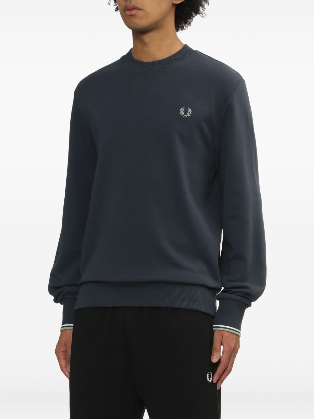 Realizzata in cotone, logo ricamato sul petto, scollo rotondo, maniche lunghe, orlo e polsini con doppia riga a coste, 100% cotone