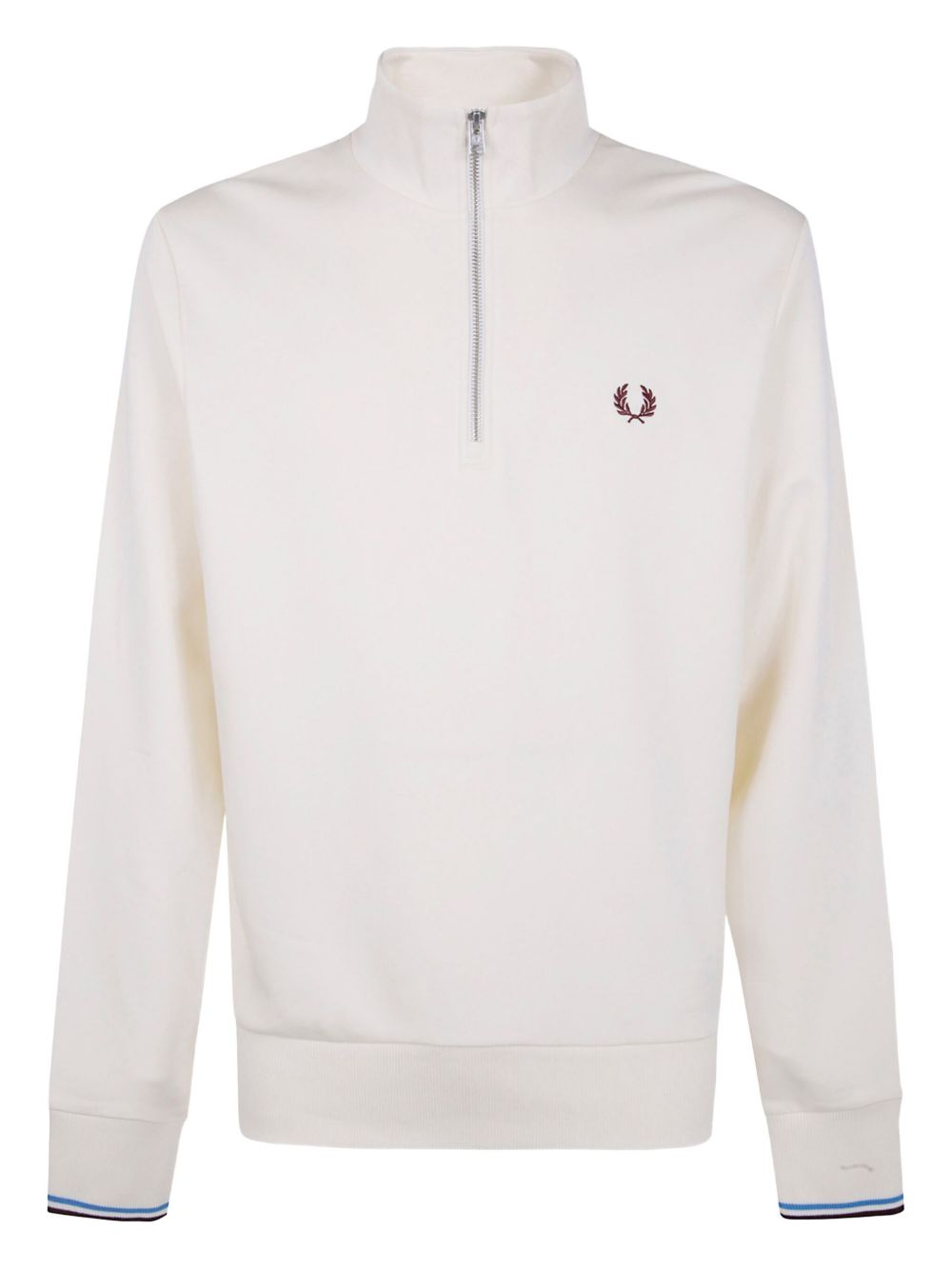 realizzata in cotone, logo ricamato sul petto, collo alto con mezza zip, maniche lunghe, polsini con doppia riga, vestibilità regolare, 100% cotone