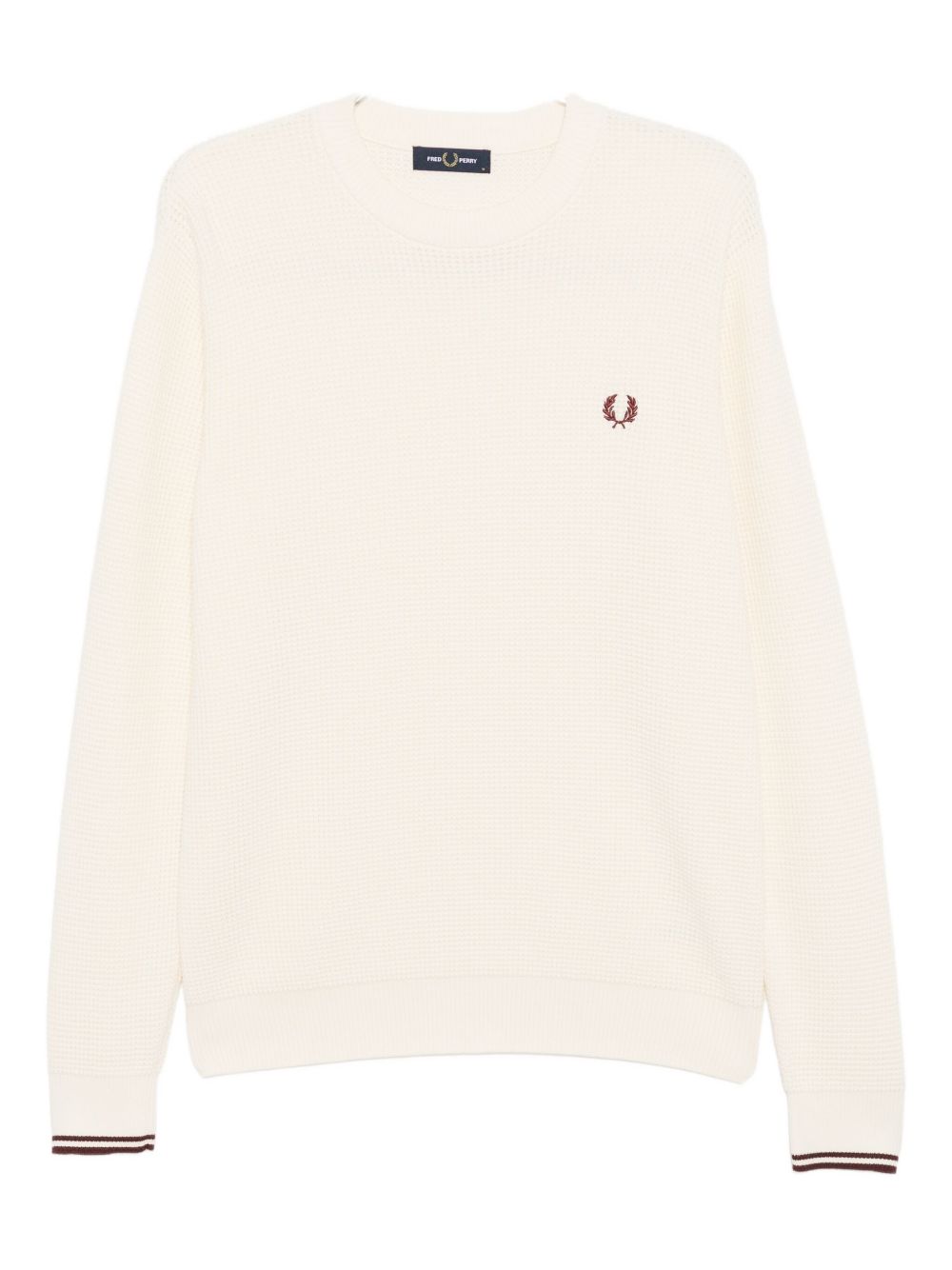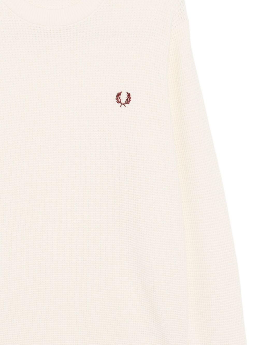 realizzata in misto cotone lavorato a nido d'ape, logo ricamato sul petto, scollo rotondo, maniche lunghe, bordi a costine, 92% cotone, 7% poliammide riciclato, 1% elastam