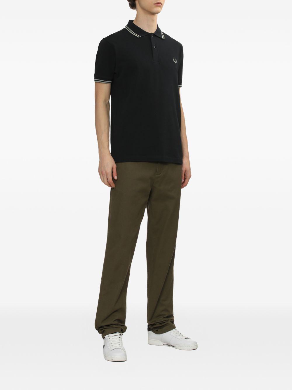 Realizzata in piquet di cotone, logo ricamato sul petto, maniche corte, colletto classico polo, dettaglio bordini a contrasto, chiusura con abbottonatura, vestibilità regolare, 100% cotone