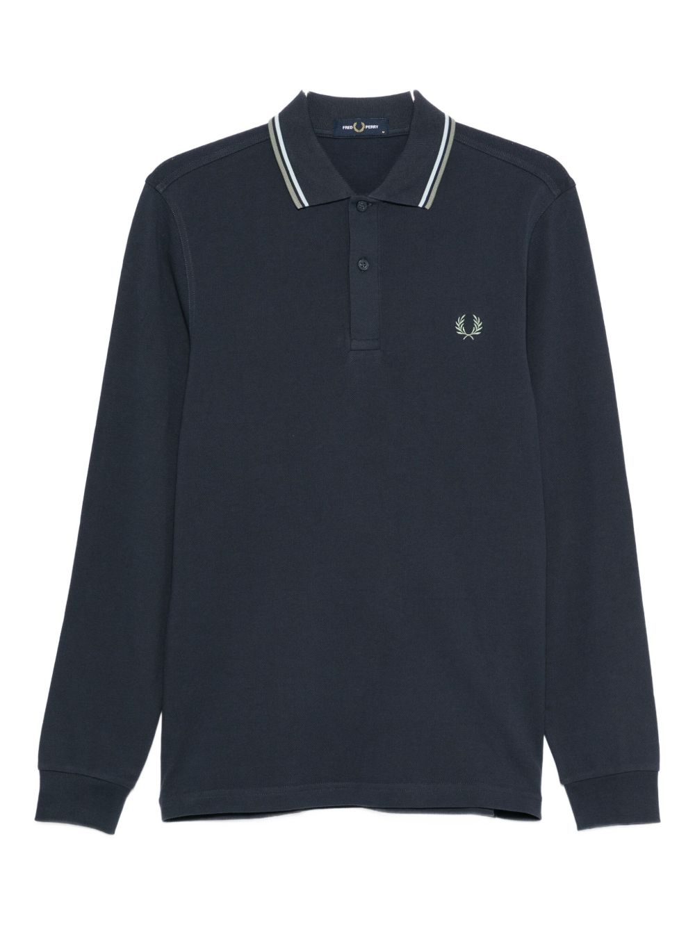 logo ricamato sul petto, colletto classico, abbottonatura frontale corta, polsini a coste, 100% cotone