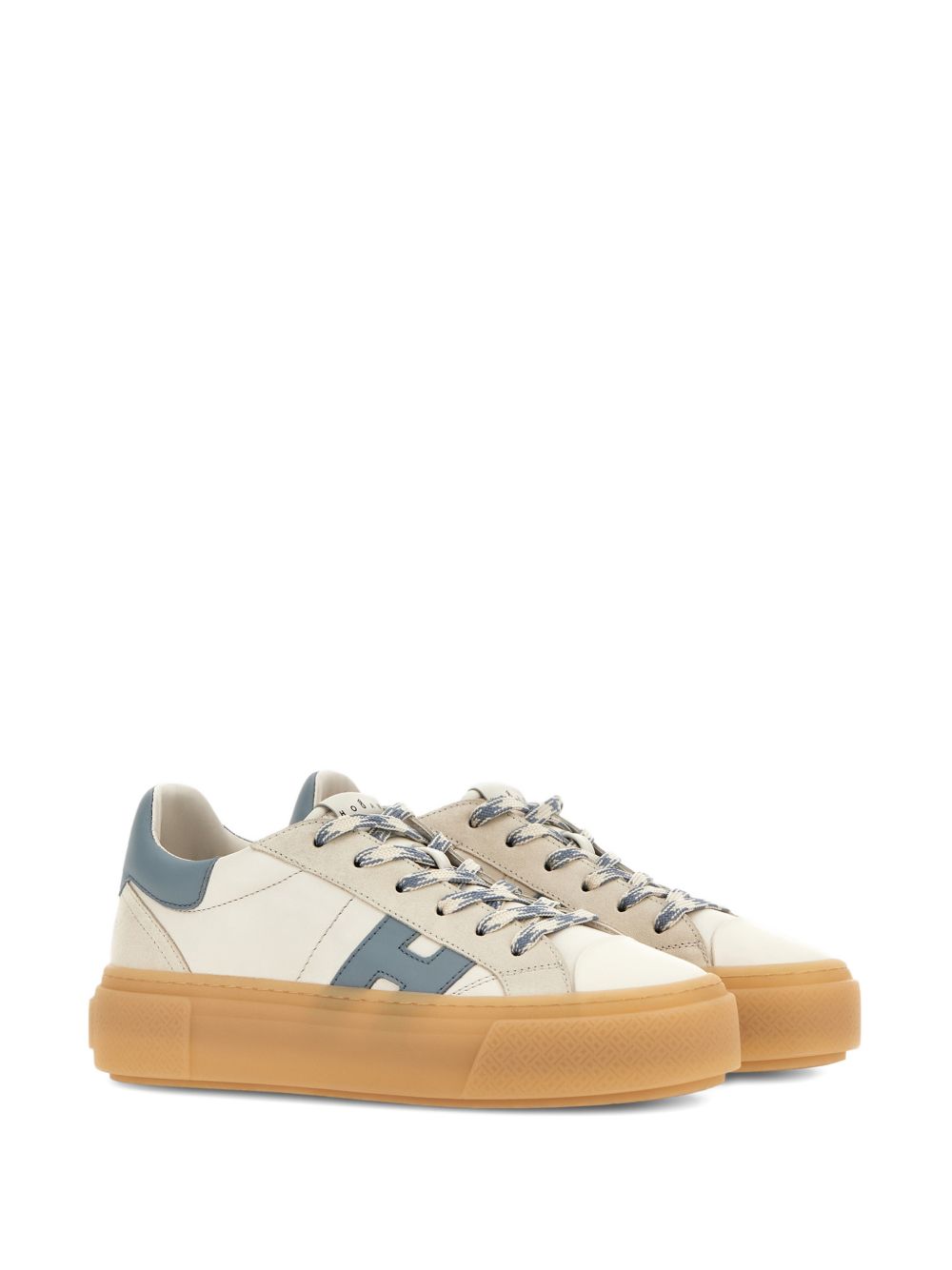 tomaia realizzata in pelle, logo laterale in pelle liscia, dettagli in pelle scamosciata, soletta in memory foam 8 mm, suola in gomma alta 5.6 cm