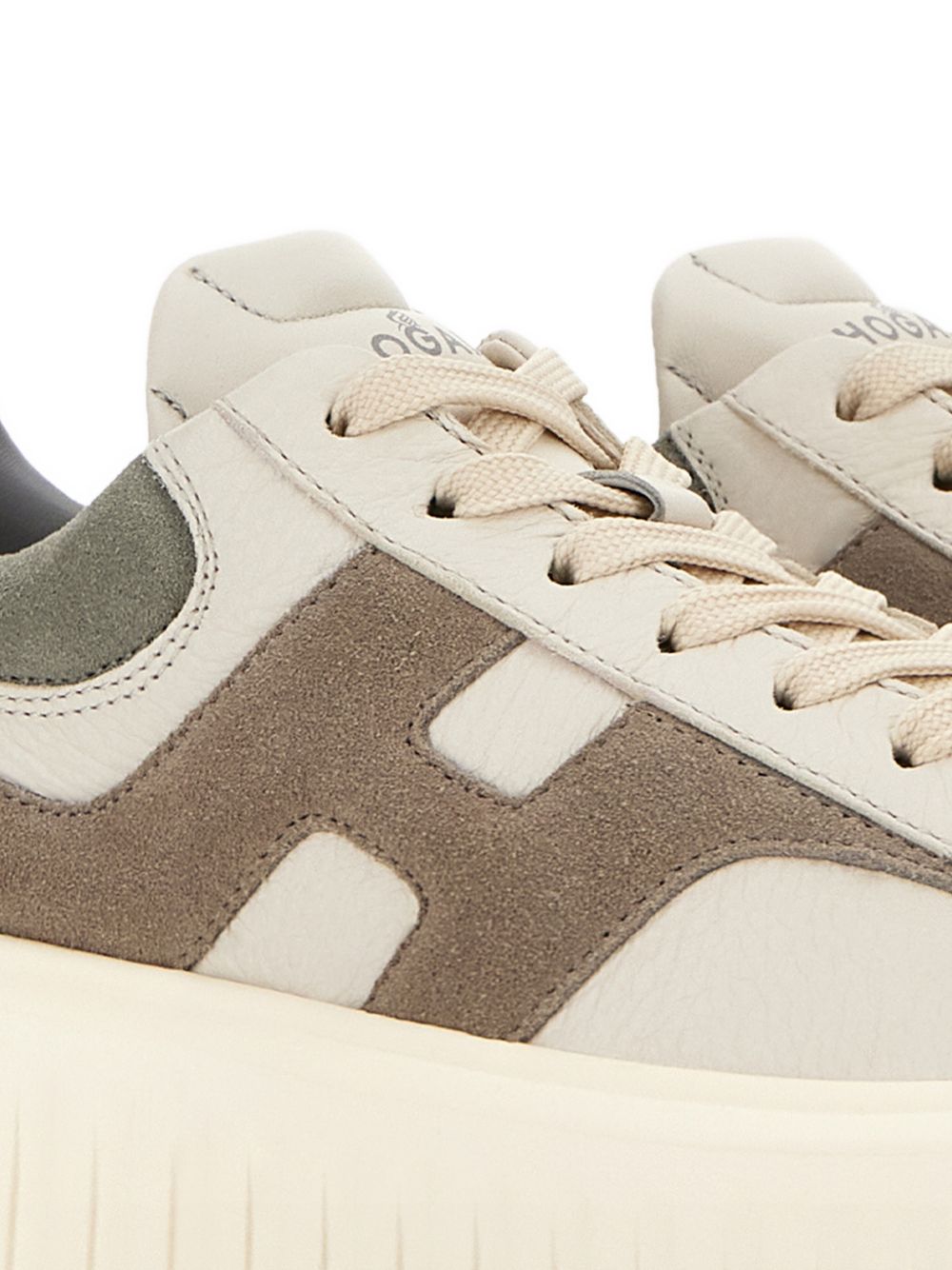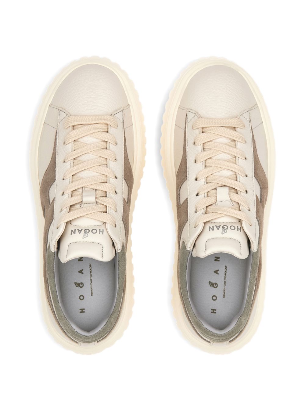tomaia realizzata in nappa, logo laterale, soletta in memory foam 8 mm, suola in EVA alta 5.8 cm