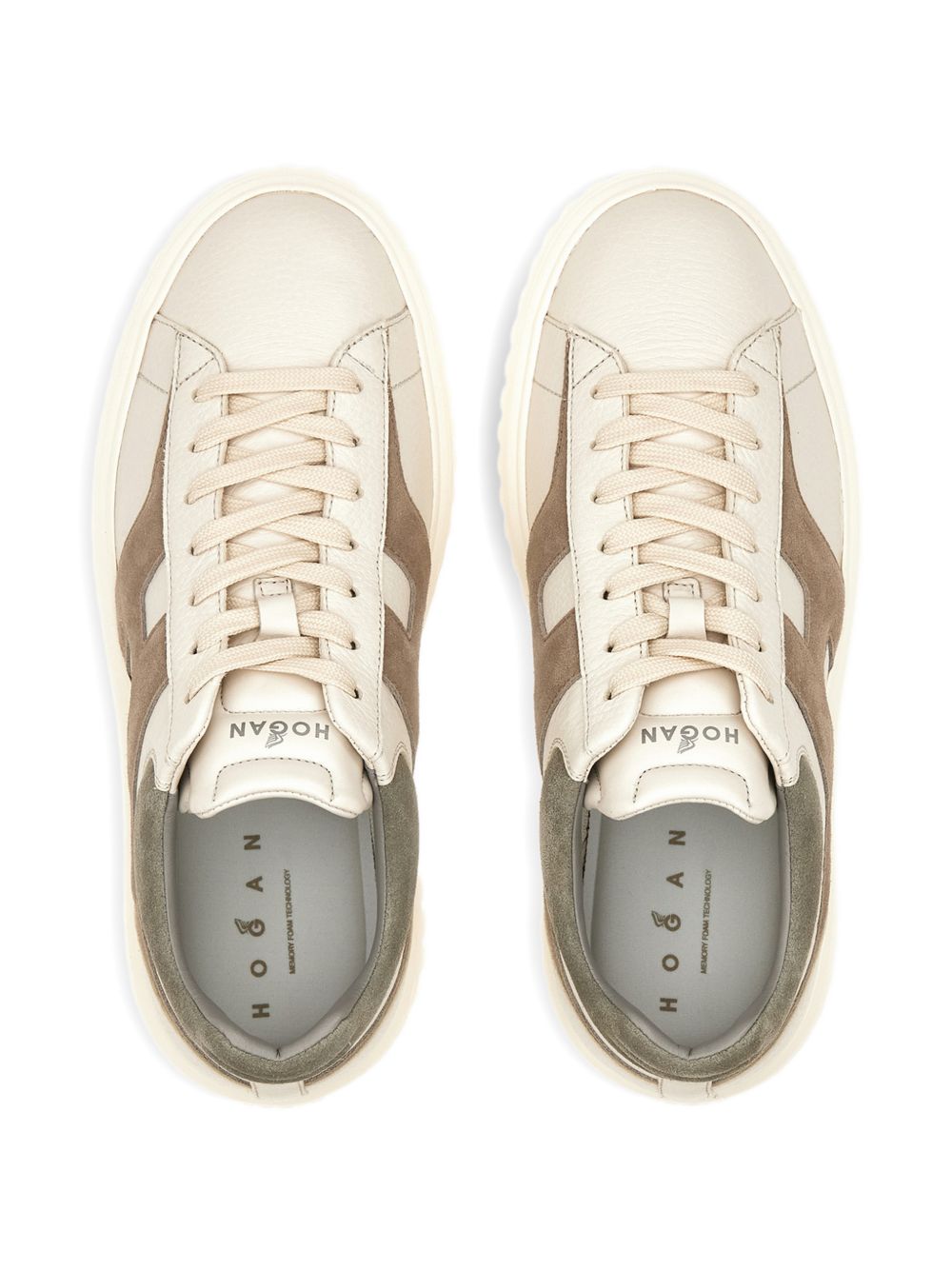 tomaia in pelle, logo laterale e dettagli in pelle scamosciata, soletta in memory foam, suola in gomma alta 4.8 cm
