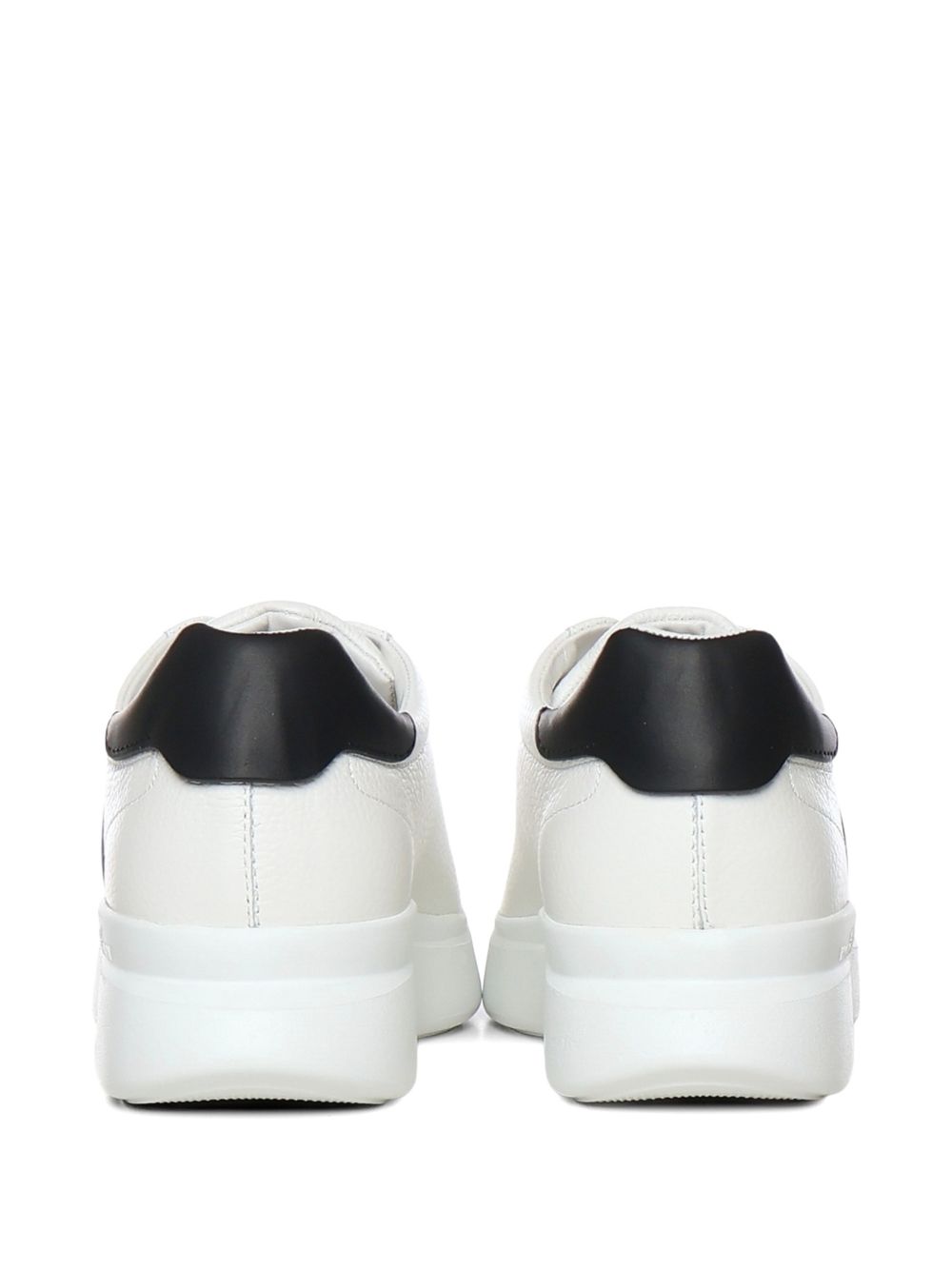 tomaia realizzata in vera pelle, logo laterale, soletta in memory foam alta 8 mm, suola in gomma, altezza totale 4.5 cm