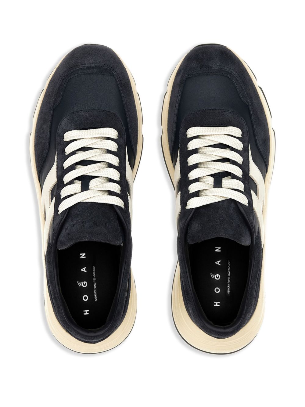 tomaia realizzata in pelle scamosciata, logo laterale in nabuk, dettagli in nappa, soletta in memory foam, suola in gomma alta 4.5 cm