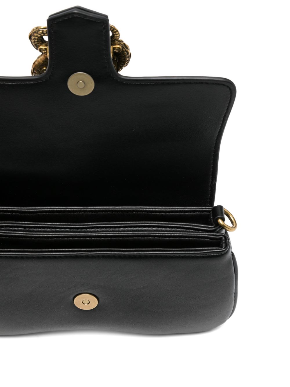 Realizzata in poliuretano, tracolla con catena removibile, fibbia logata in metallo color oro davanti, altezza 12 cm, larghezza 24 cm, profondità 4 cm, 100% poliuretano