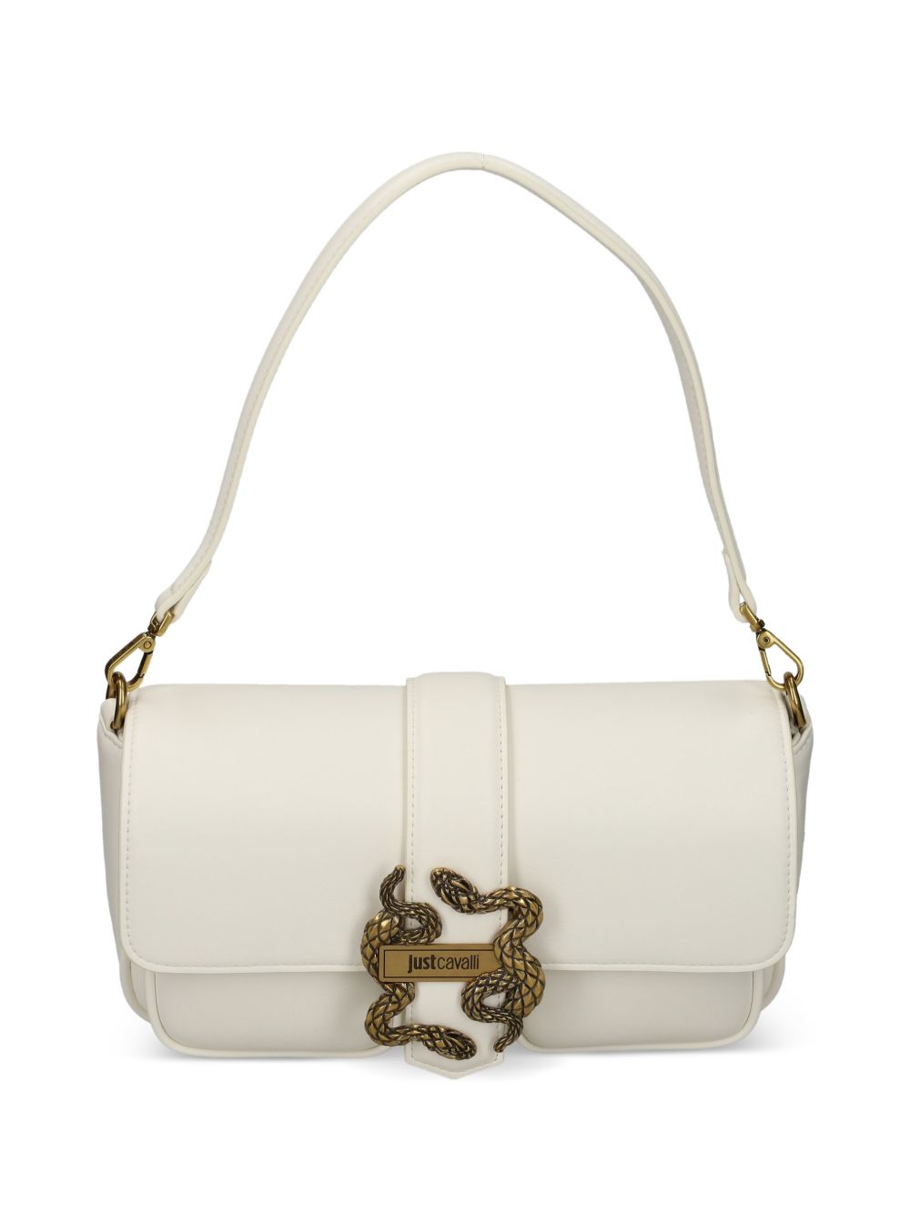 Realizzata in poliuretano, tracolla con catena removibile, fibbia logata in metallo color oro davanti, altezza 6 cm, larghezza 26 cm, profondità 10 cm, 100% poliuretano