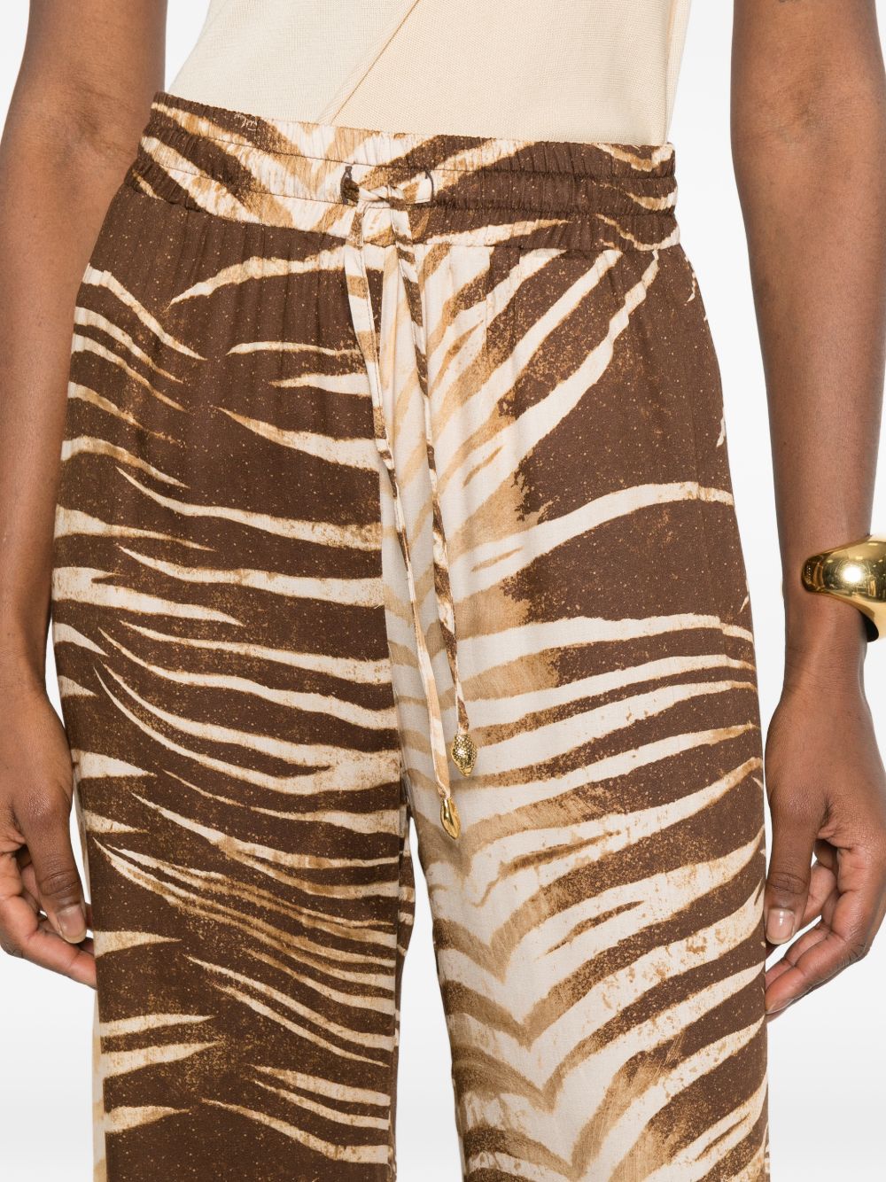 Realizzato in viscosa, vita elasticizzata con coulisse, stampa all-over, 100% viscosa