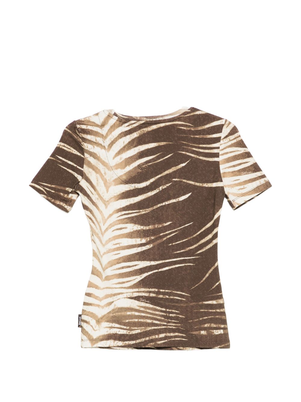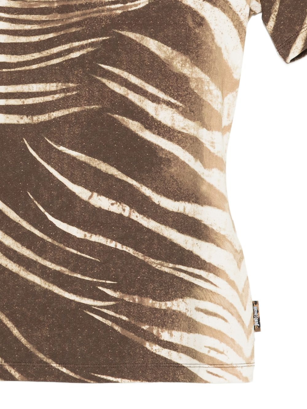 realizzata in cotone, scollo ampio, maniche corte, stampa animalier, 95% cotone, 5% elastam