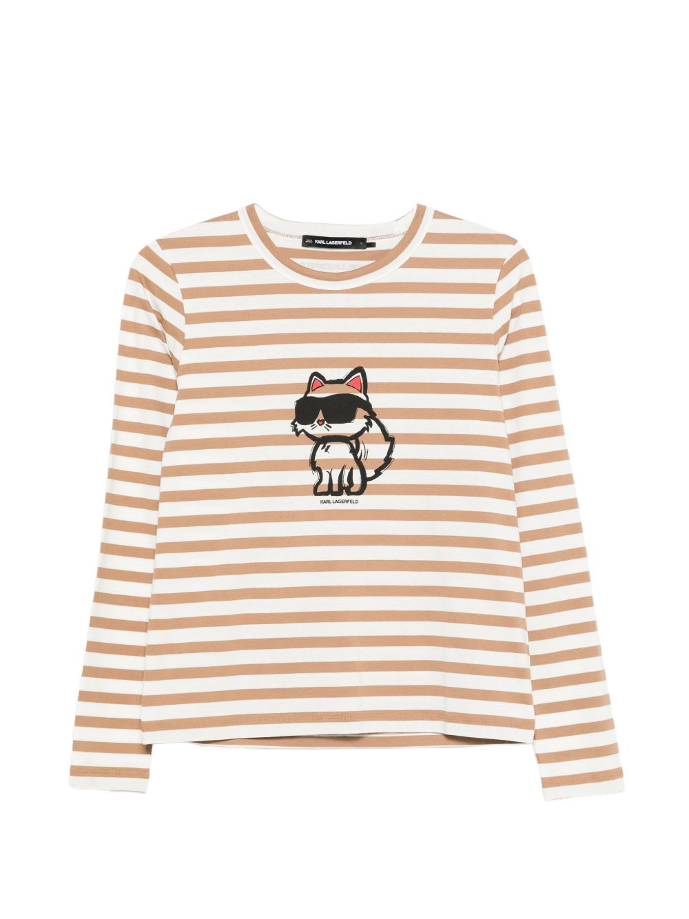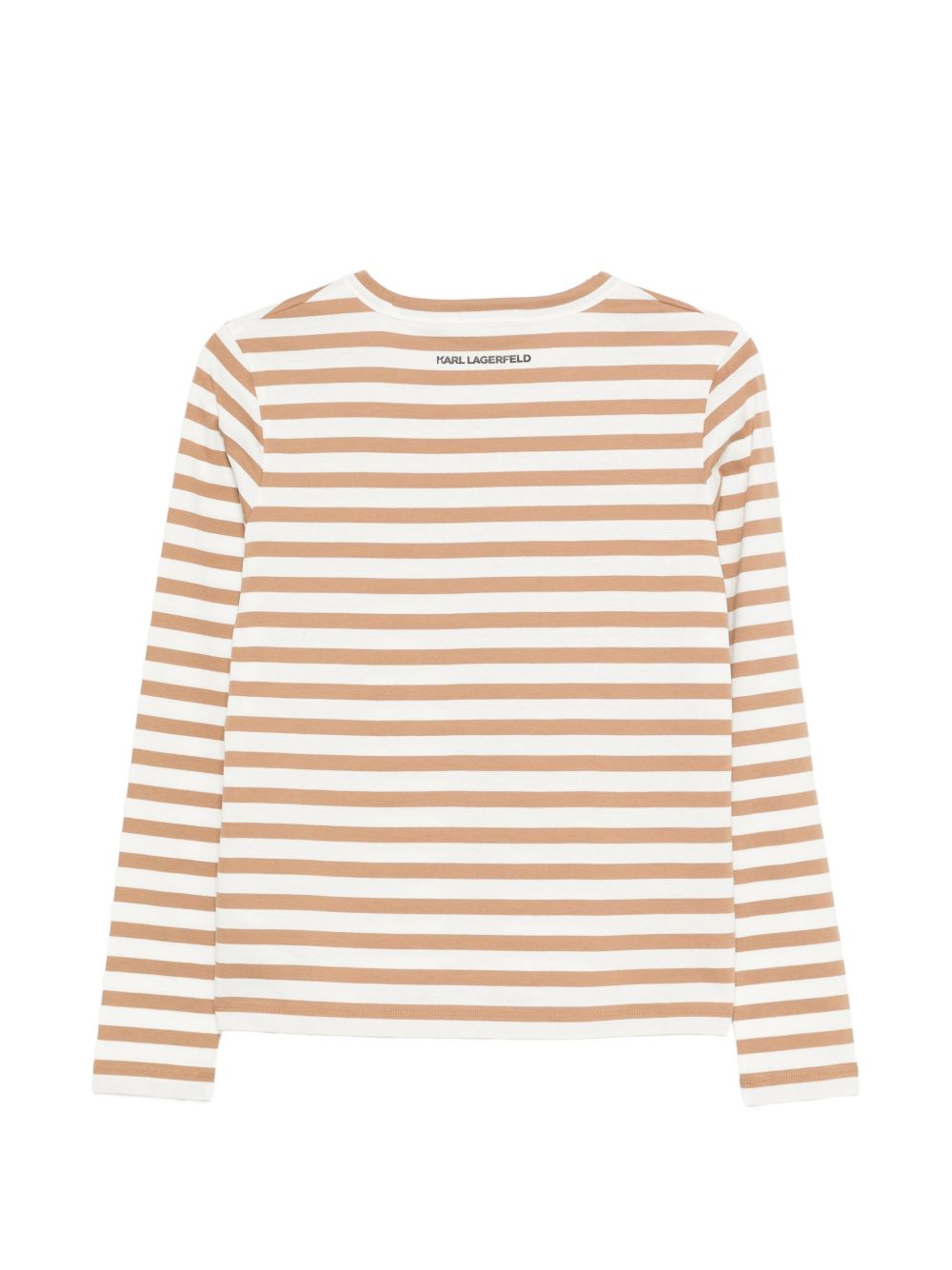 Realizzata in cotone biologico, girocollo, maniche lunghe, trama a righe, stampa davanti, 100% cotone biologico