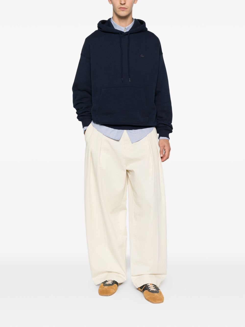 Realizzata in cotone, cappuccio con coulisse regolabile, tasca a marsupio davanti, dettaglio logo ricamato sul petto tono su tono, polsini e orlo a costine, 100% cotone