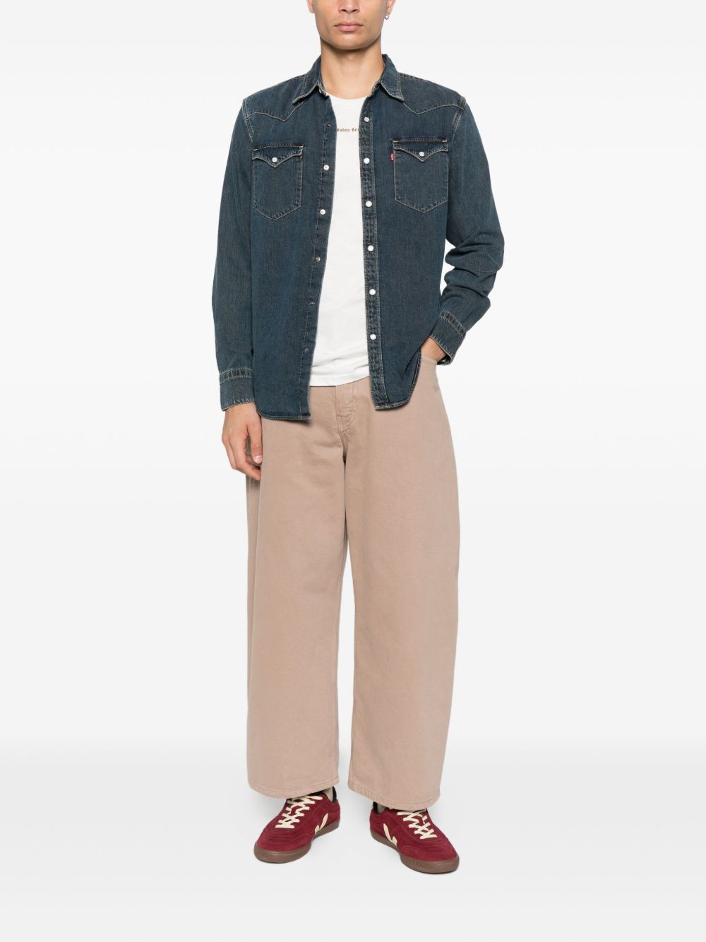 Realizzata in cotone, colletto a punta, due tasche davanti con bottone, chiusura frontale con bottoni a pressione, vestibilità regolare, 100% cotone