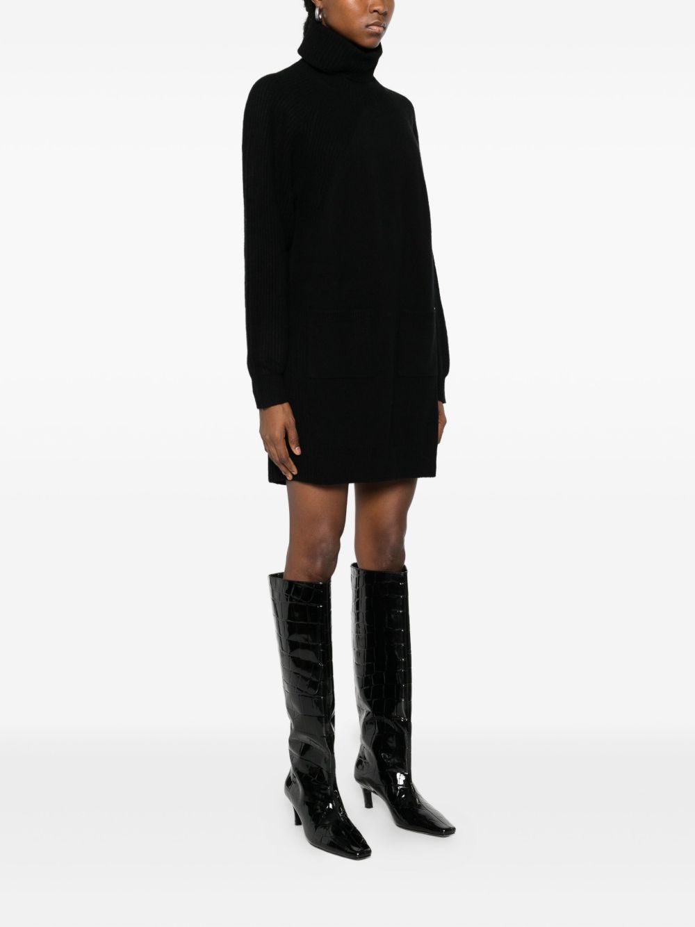 Realizzato in lana, collo alto, due tasche davanti, 100% lana