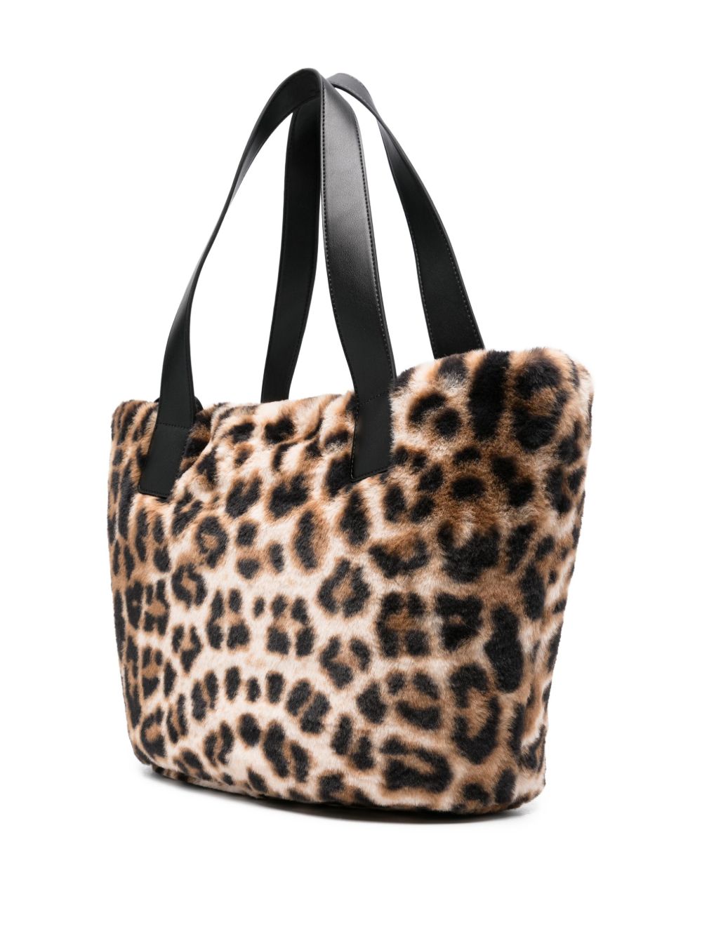 realizzata in ecopelliccia animalier, doppio manico, charm con lettere color oro, tasca interna con zip, lunghezza 50 cm, altezza 30 cm, profondità 15 cm, 100% poliestere