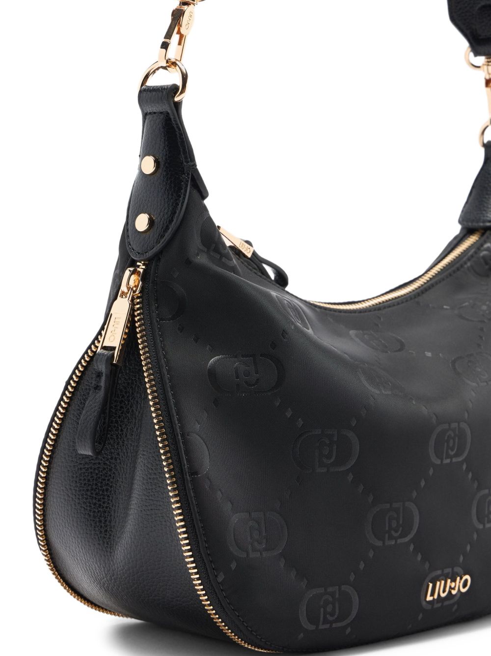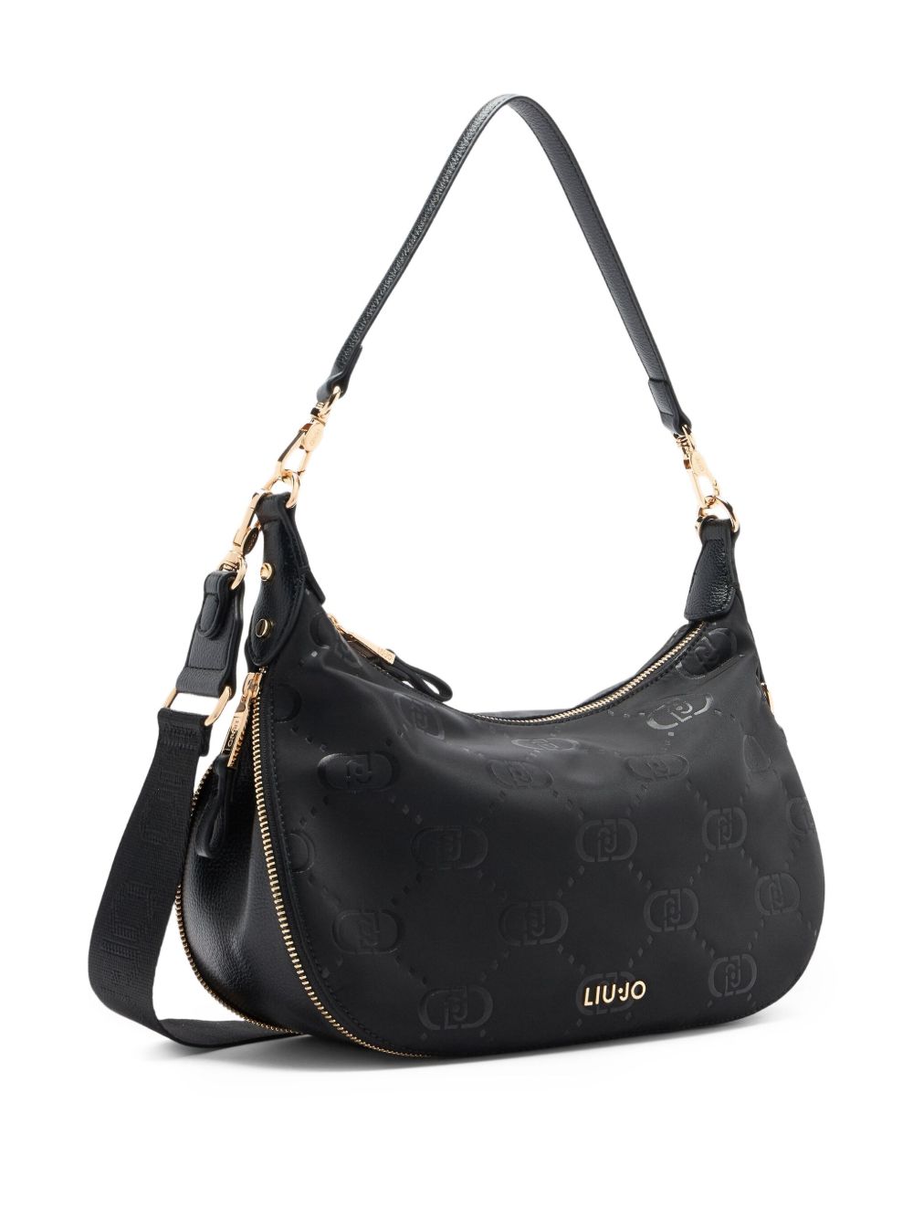 realizzata in nylon, logo in metallo sul davanti, manico removibile, tracolla logata regolabile e removibile, tasca interna, chiusura superiore con zip, lunghezza 32 cm, altezza 25 cm, profondità 10 cm, 100% poliammide