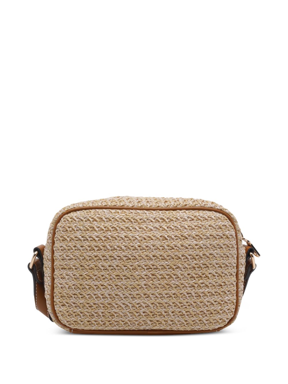 Borsa Liu Jo da donna modello camera bag in tonalità beige con stampa logo, caratterizzata da struttura compatta e design moderno.