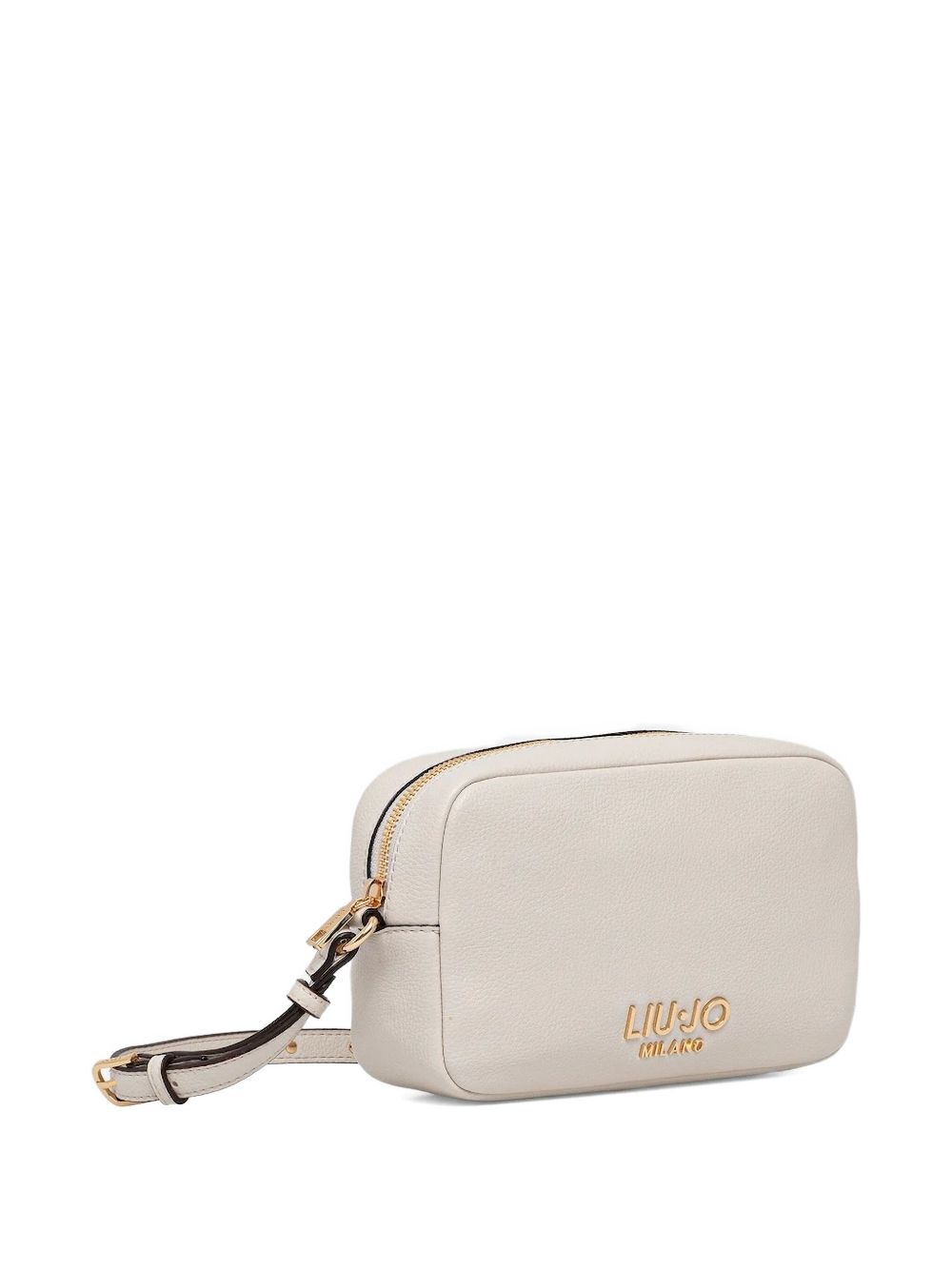 Realizzata in ecopelle, logo davanti in metallo color oro, tracolla regolabile, altezza 12 cm, larghezza 23 cm, profondità 5 cm
