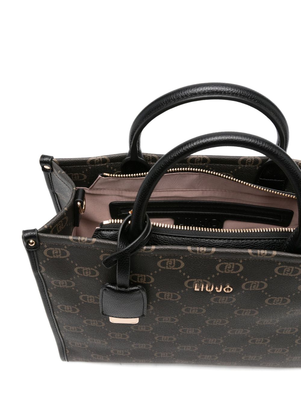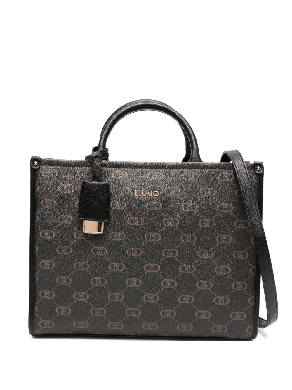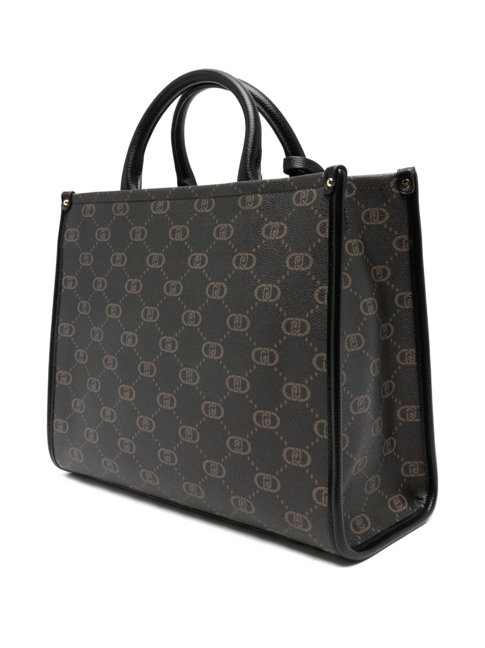 realizzata in ecopelle logata, doppio manico, tracolla regolabile e removibile, tasca interna a parete con zip, charm con logo, piedini metallici sul fondo, chiusura superiore con zip, lunghezza 34 cm, altezza 26 cm, profondità 14 cm, 100% poliestere