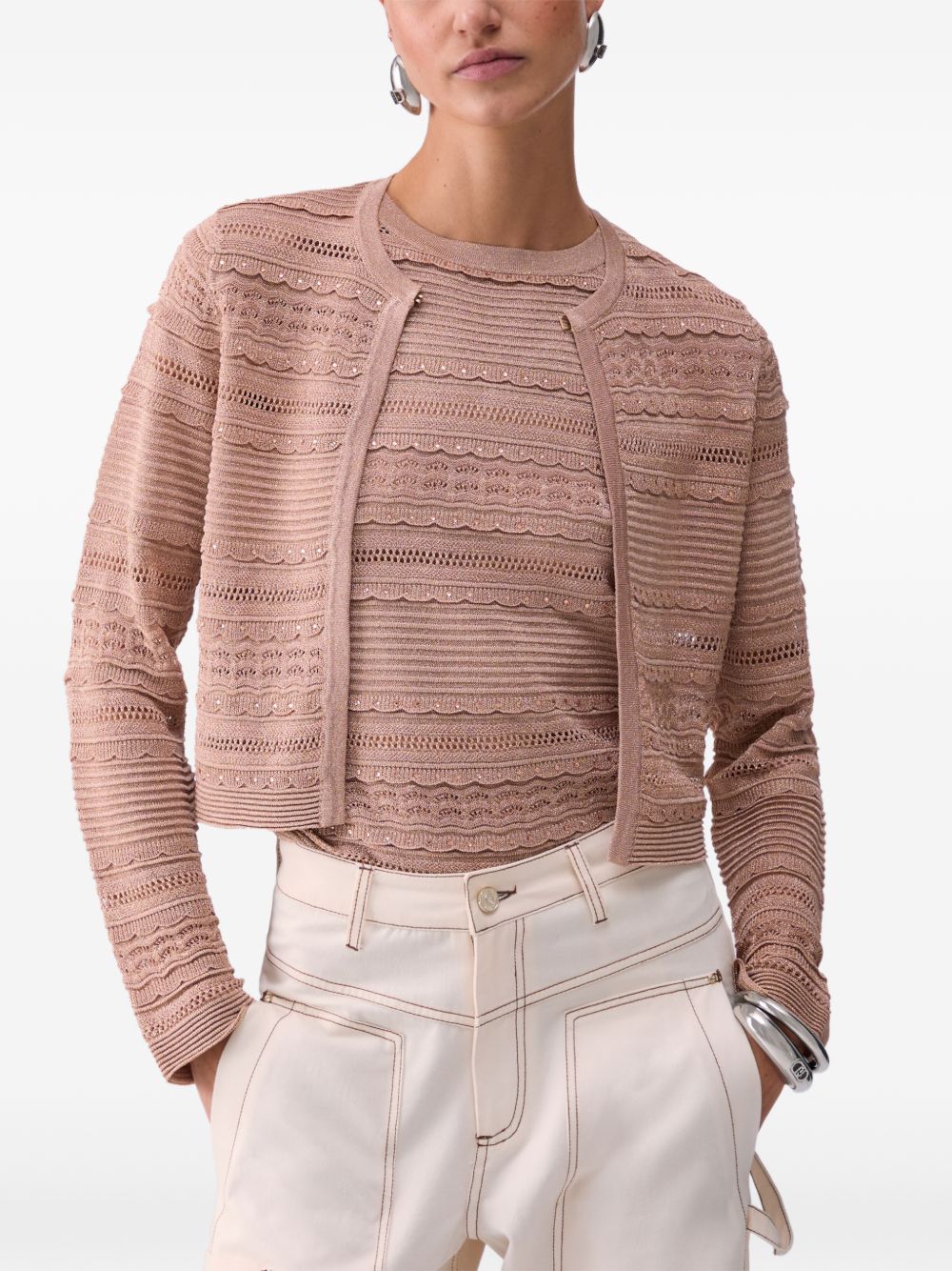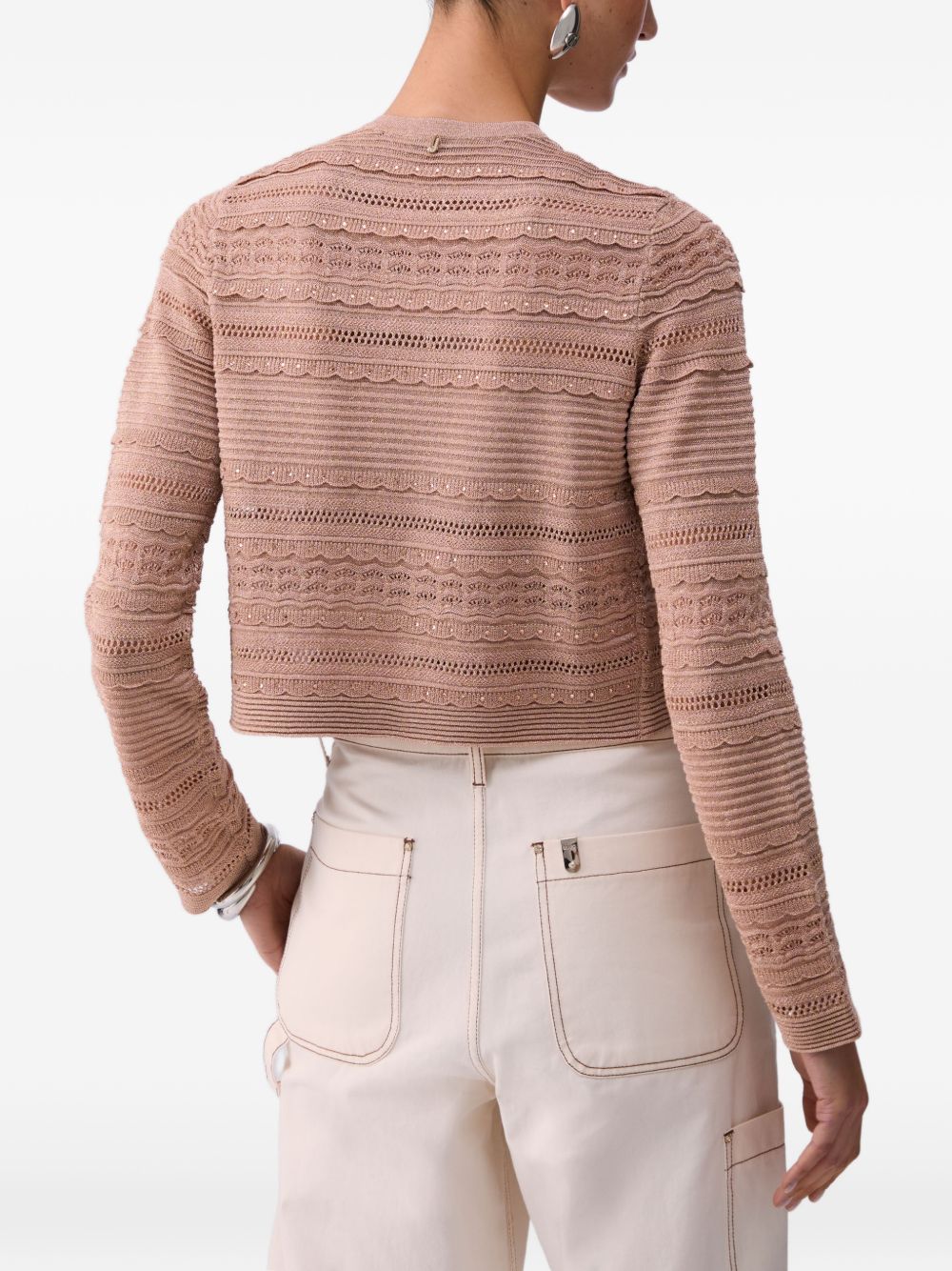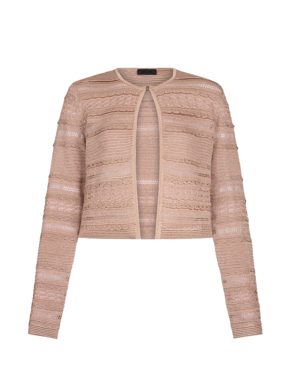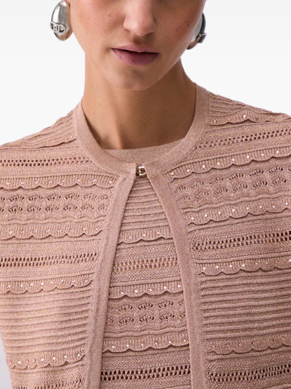 Cardigan Liu Jo da donna in lurex color bronzo, perfetto per aggiungere un accento brillante agli outfit.