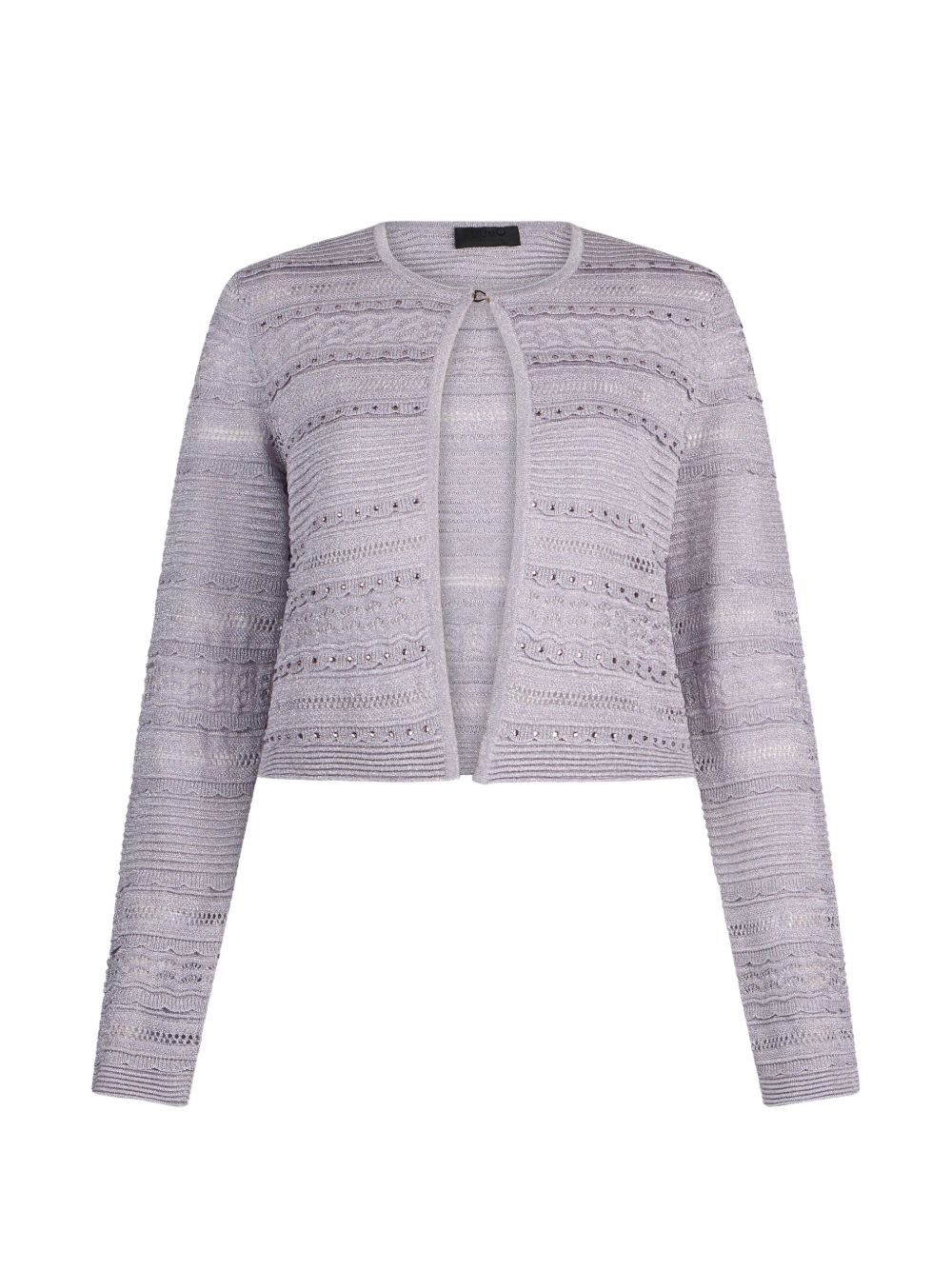 Cardigan Liu Jo da donna in lurex color lilla, ideale per completare outfit eleganti con un tocco luminoso.