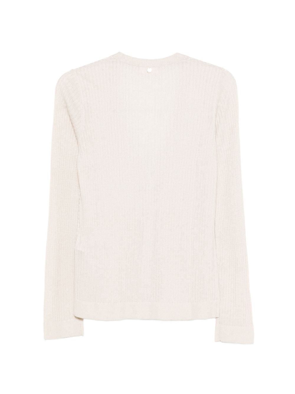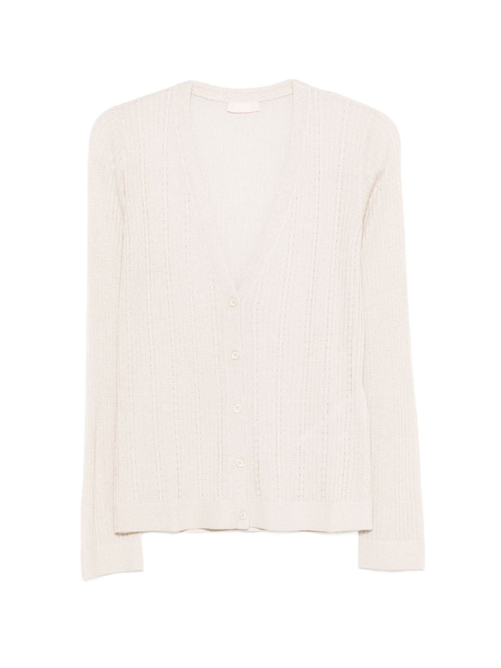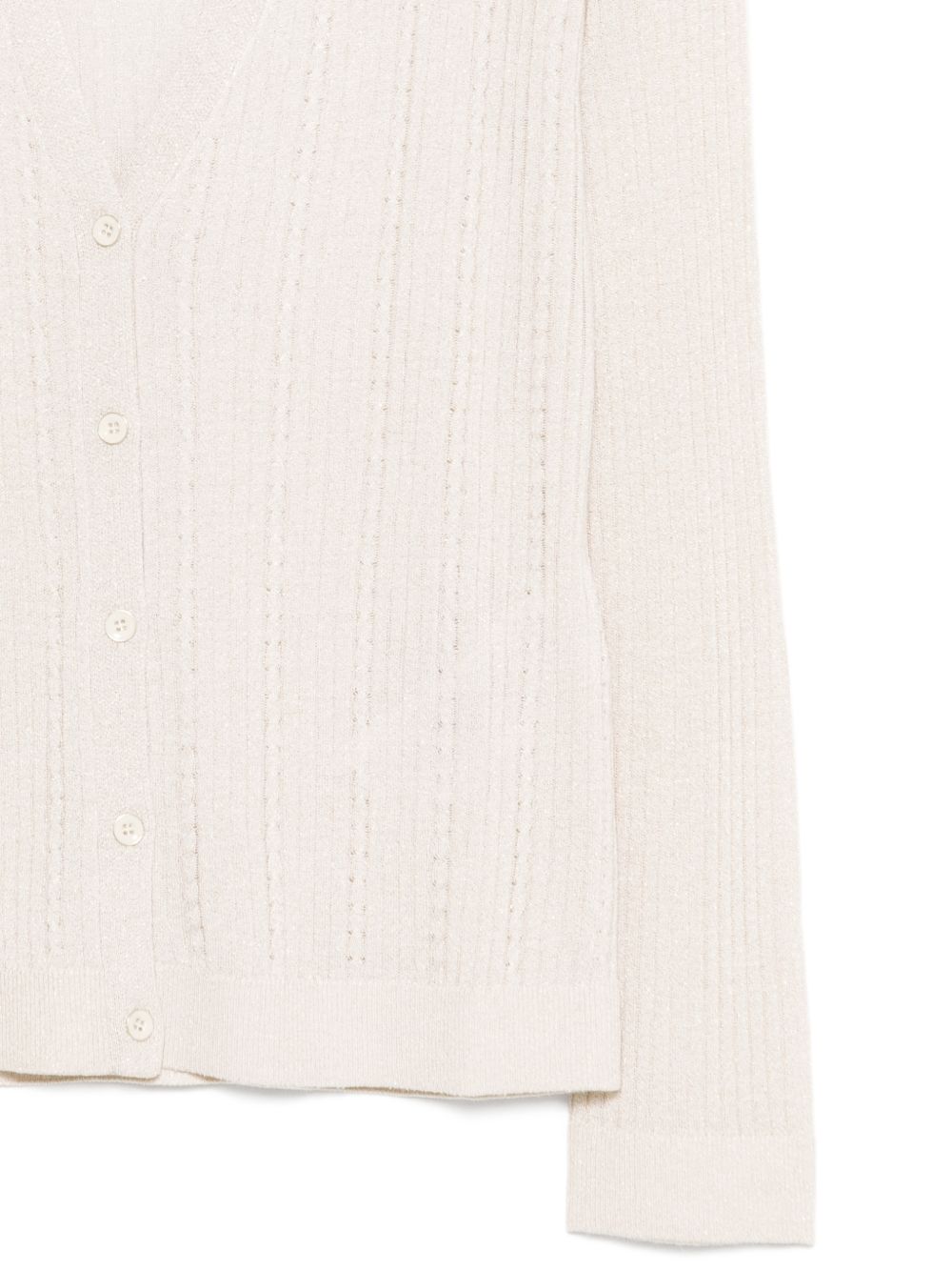 Cardigan Liu Jo da donna in costina lurex color platino, ideale per completare look eleganti e casual.