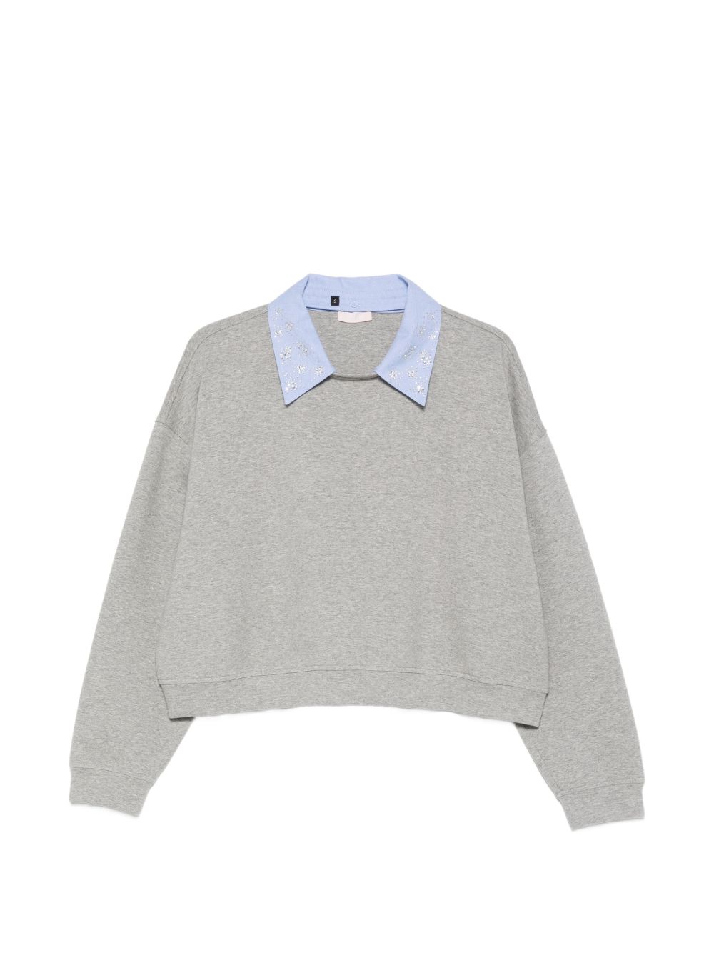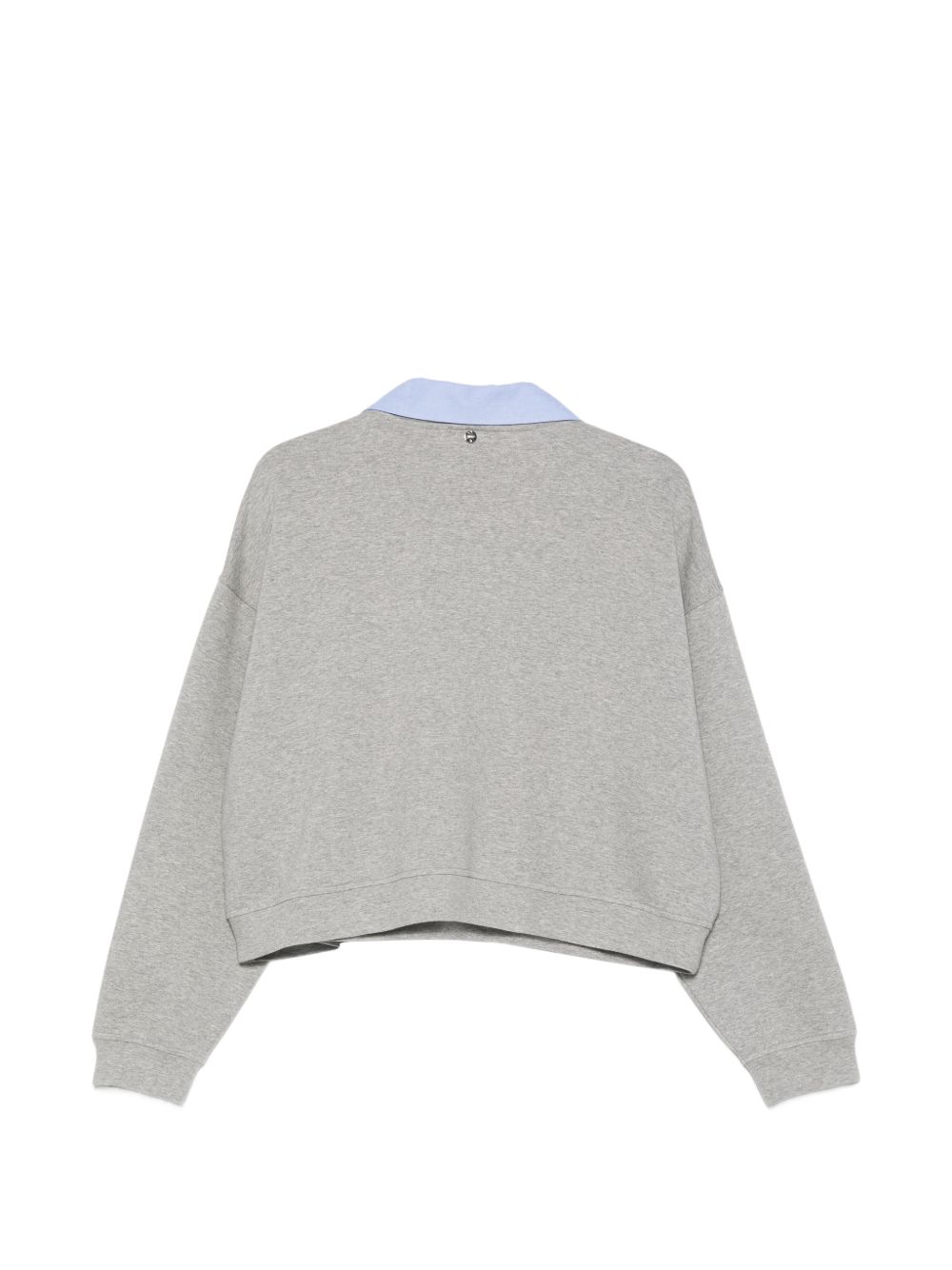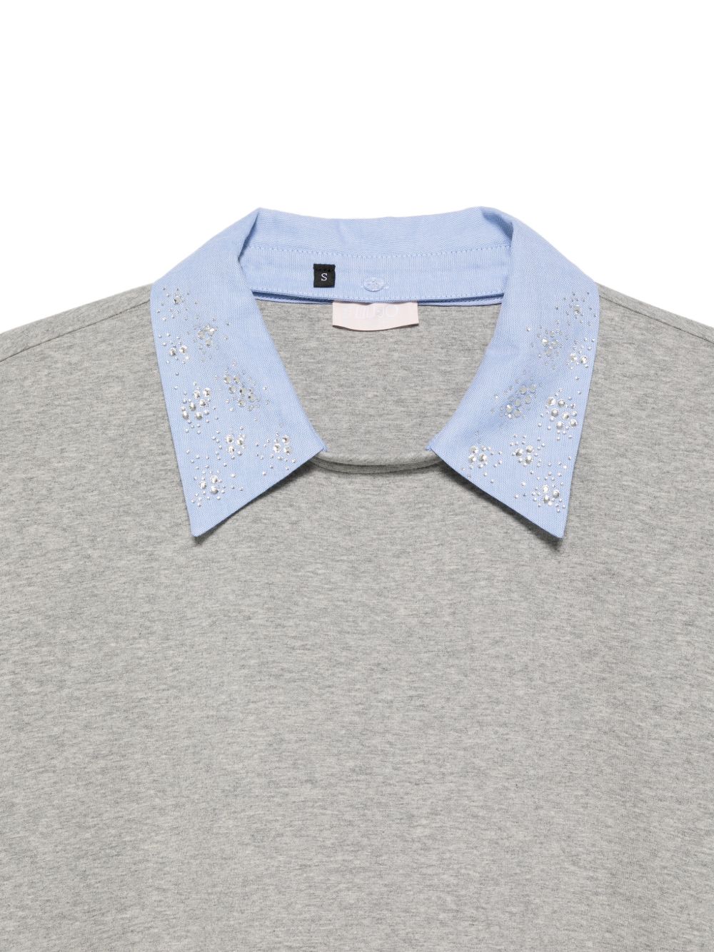 Realizzata in misto cotone, colletto stile polo, maniche lunghe, design croppato, 80% cotone, 15% poliestere, 5% elastam