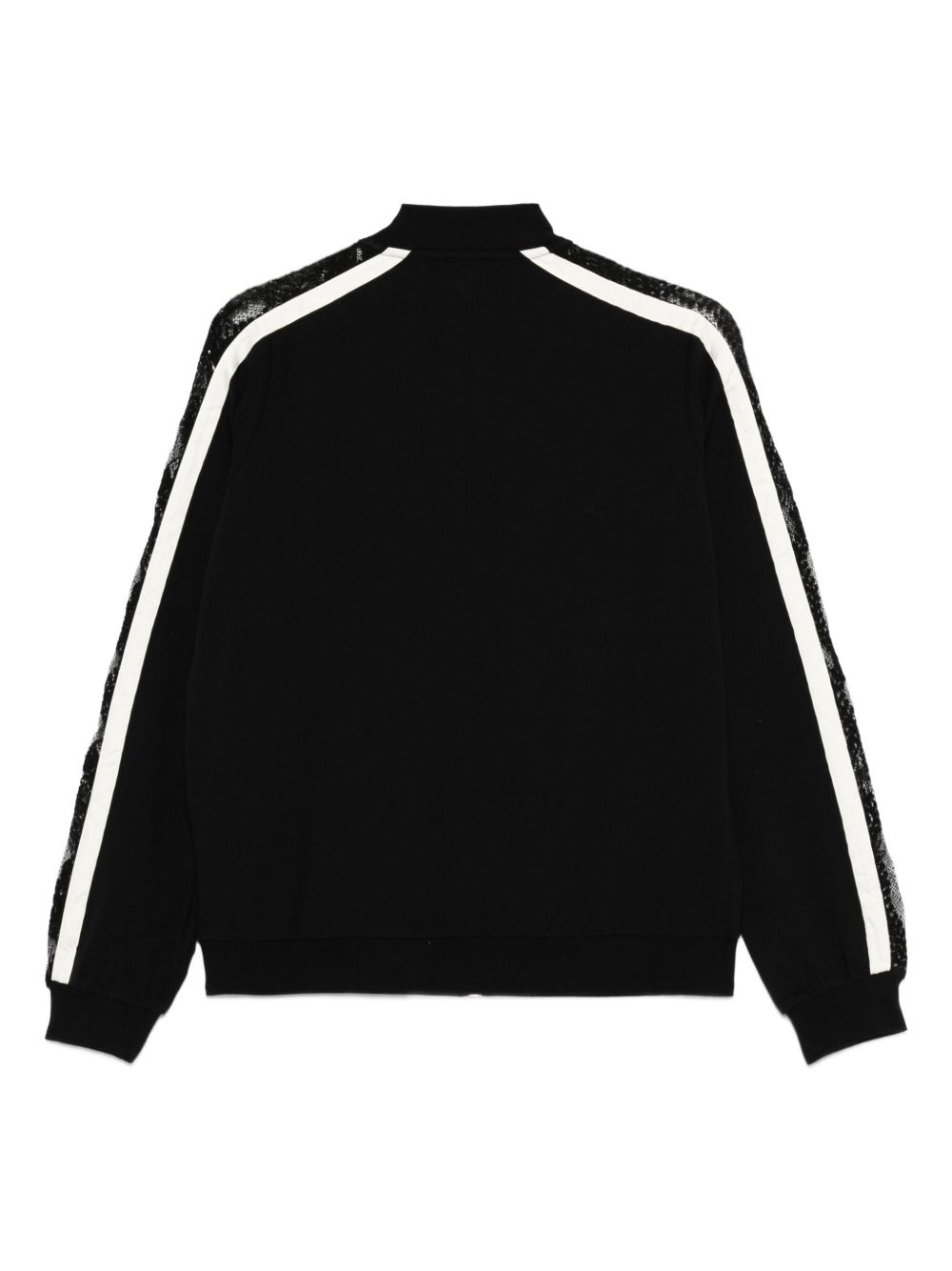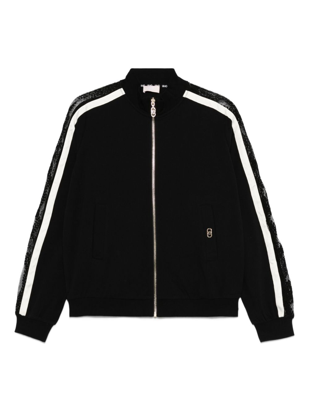 Realizzata in cotone stretch, chiusura frontale con tirazip logata, bande laterali a contrasto, applicazione logo in metallo davanti, due tasche laterali, 95% cotone, 5% elastan