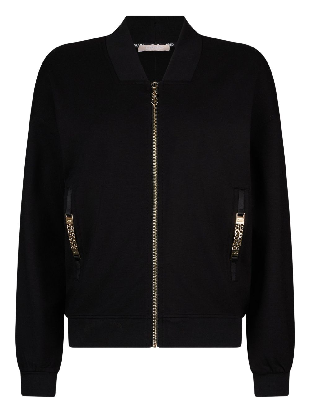 Realizzata in misto viscosa, chiusura davanti con zip, due tasche laterali con dettaglio in metallo color oro.