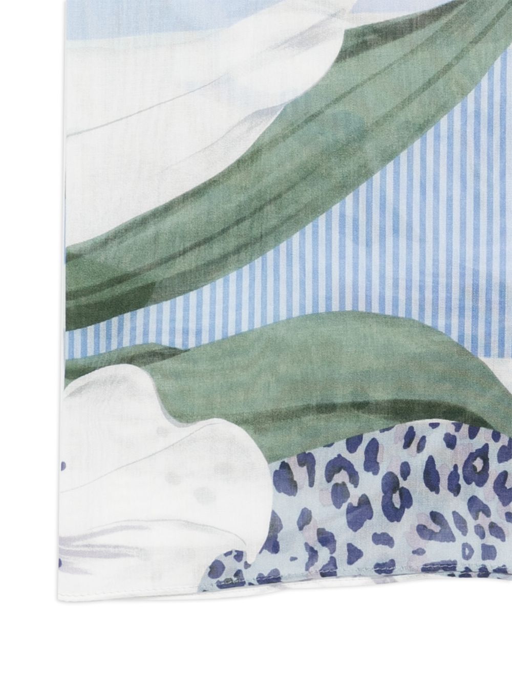 Foulard Liu Jo da donna con fantasia floreale e dettagli maculati nei toni del celeste, perfetto per completare look leggeri e contemporanei.