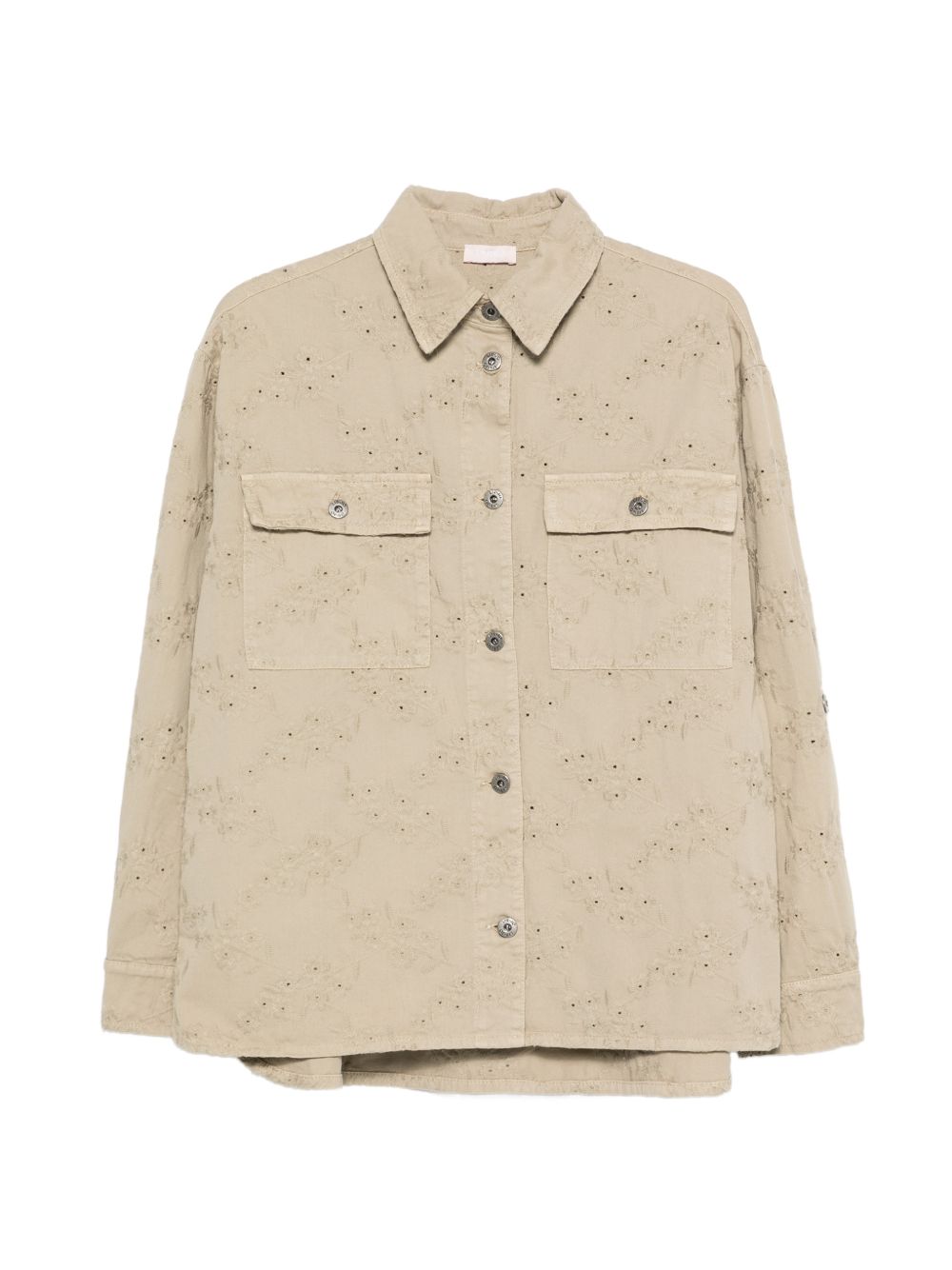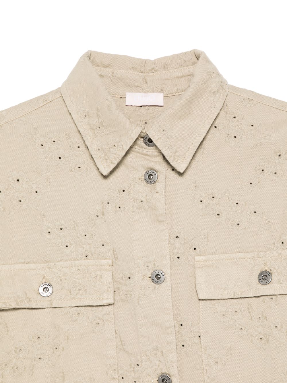 Realizzata in cotone, chiusura frontale con abbottonatura, colletto classico stile camicia, taschini altezza petto con bottoni, 100% cotone