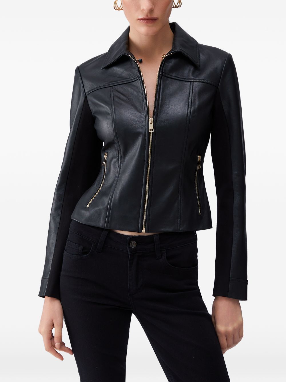 Giacca Liu Jo da donna in pelle nera dal design strutturato, perfetta per un look deciso e contemporaneo.