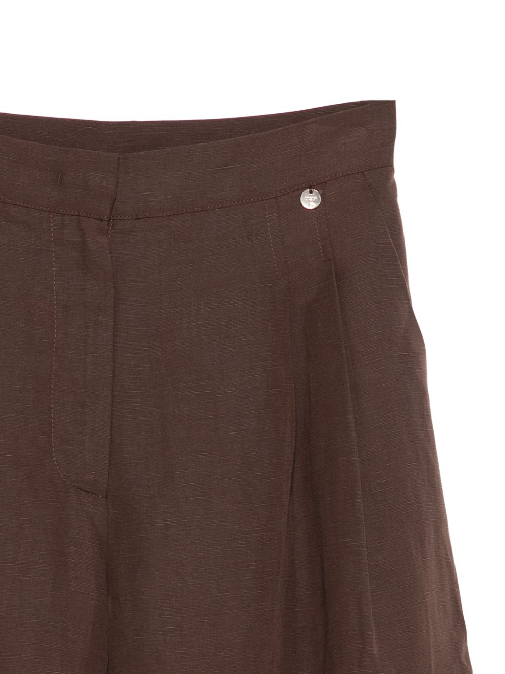 Gonna Liu Jo da donna in lino marrone, ideale per outfit estivi naturali e raffinati.Il tessuto garantisce freschezza e comfort.Vestibilità: regolareColore: MarroneComposizione: lino 100%