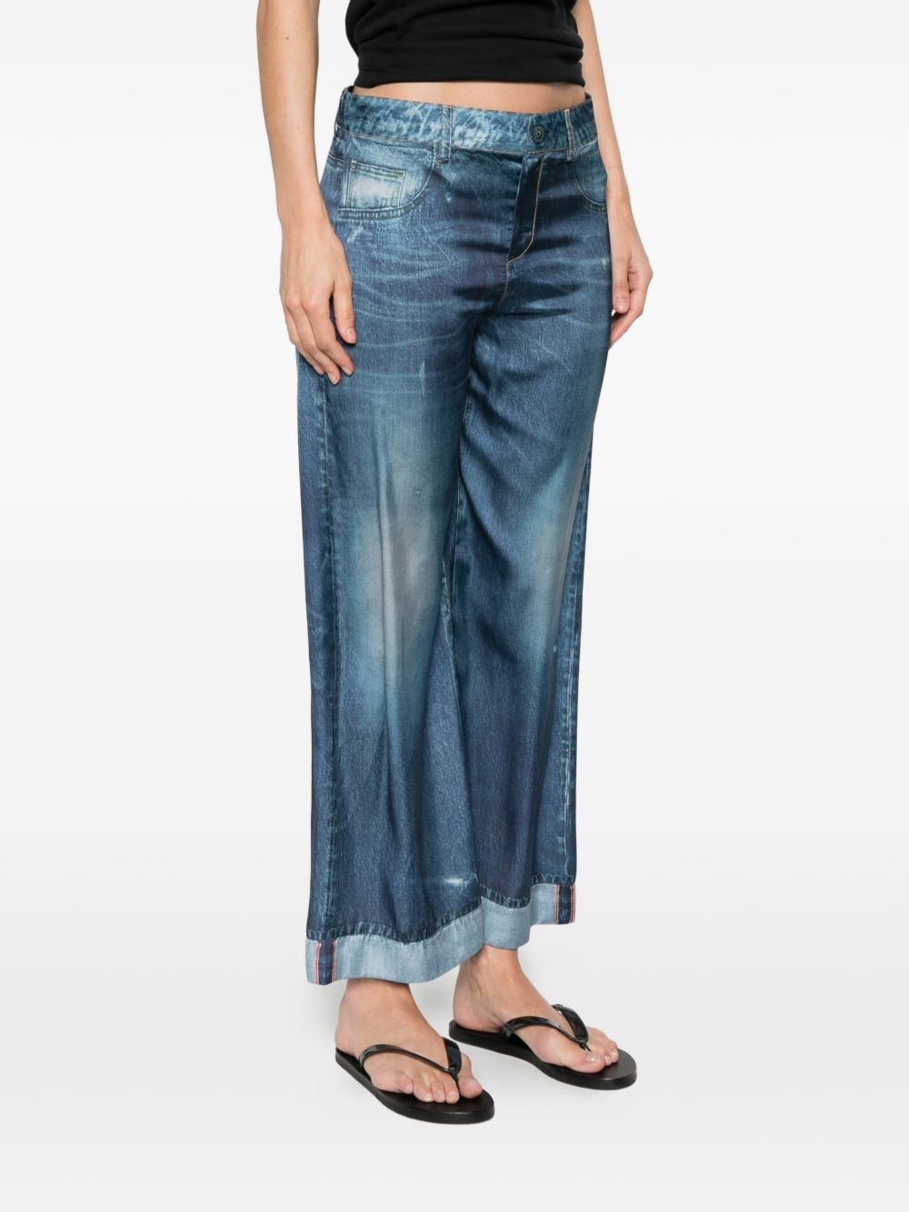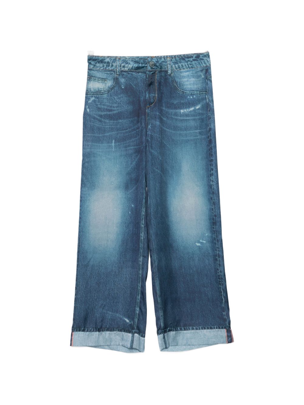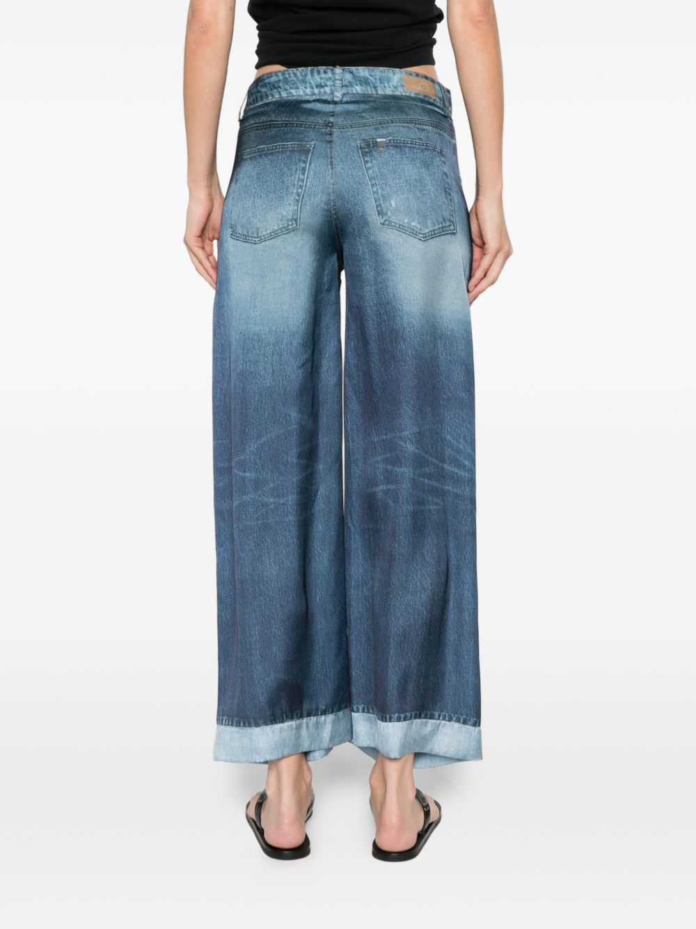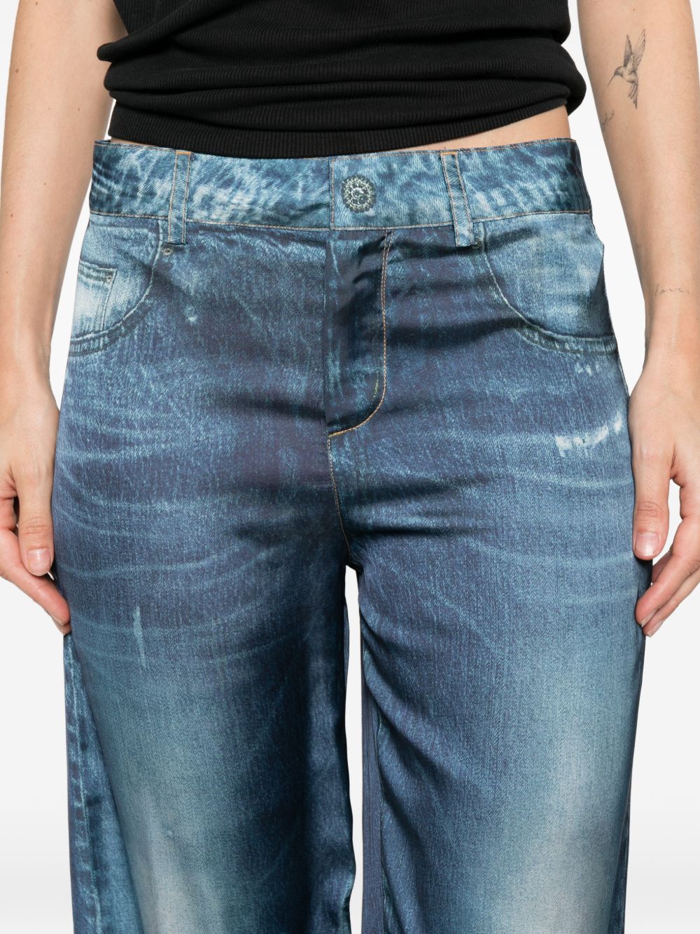Jeans Liu Jo da donna in denim medio con effetto raso stampato, caratterizzati da design originale e contemporaneo.