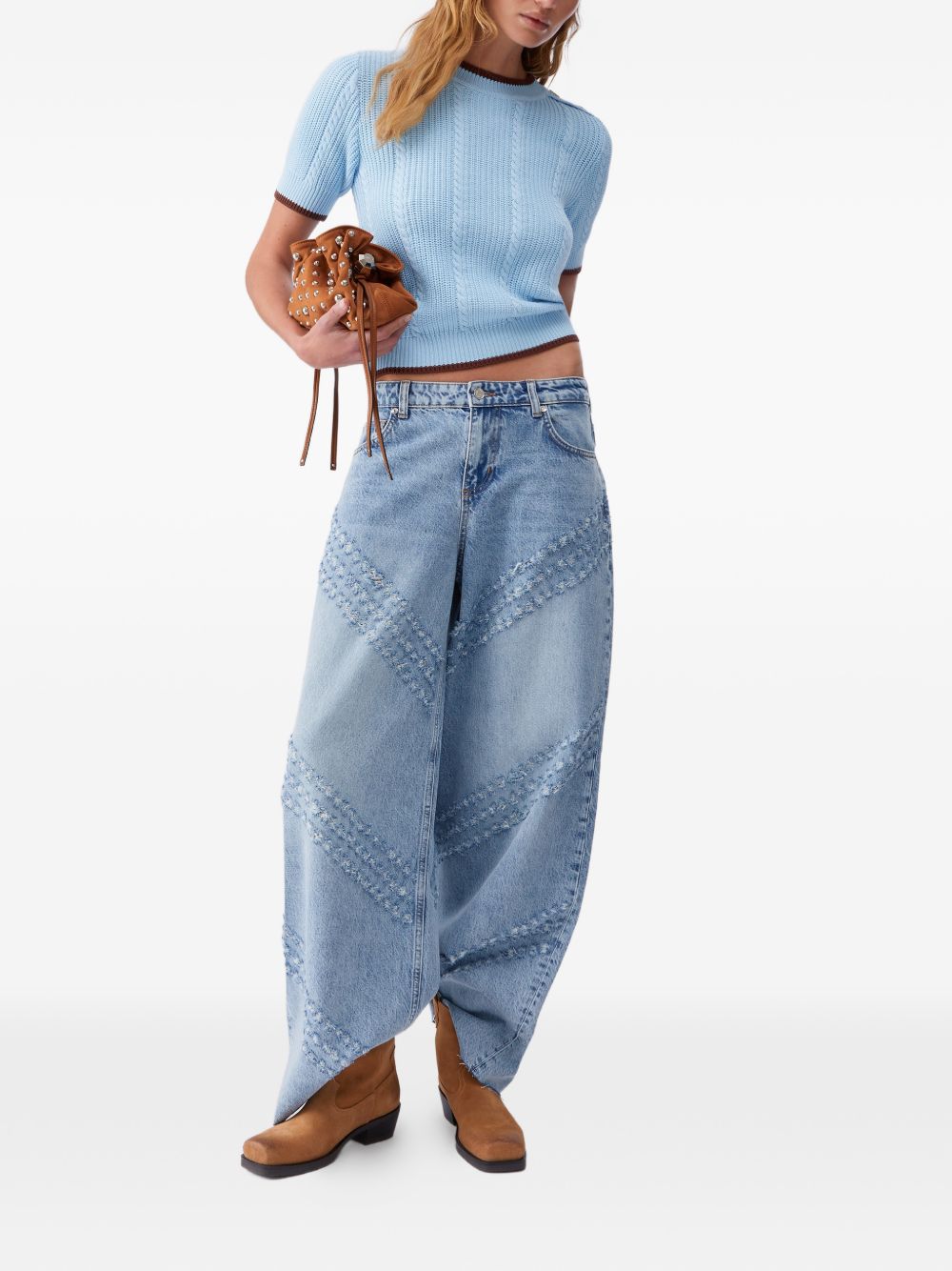 Realizzata in cotone, lavorazione a maglia intrecciata, dettaglio bottoni sulla spalla, girocollo, mezza manica, orli e collo a contrasto, 100% cotone