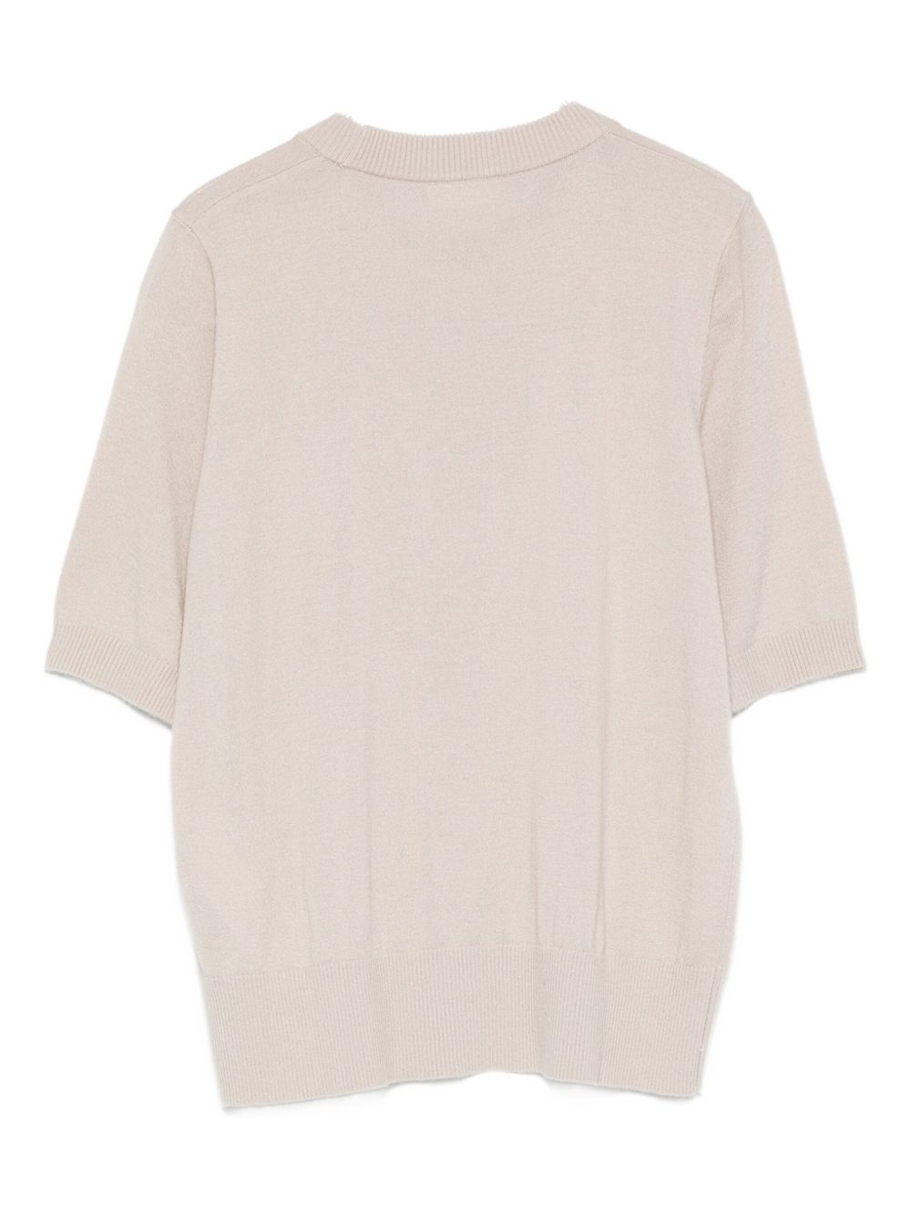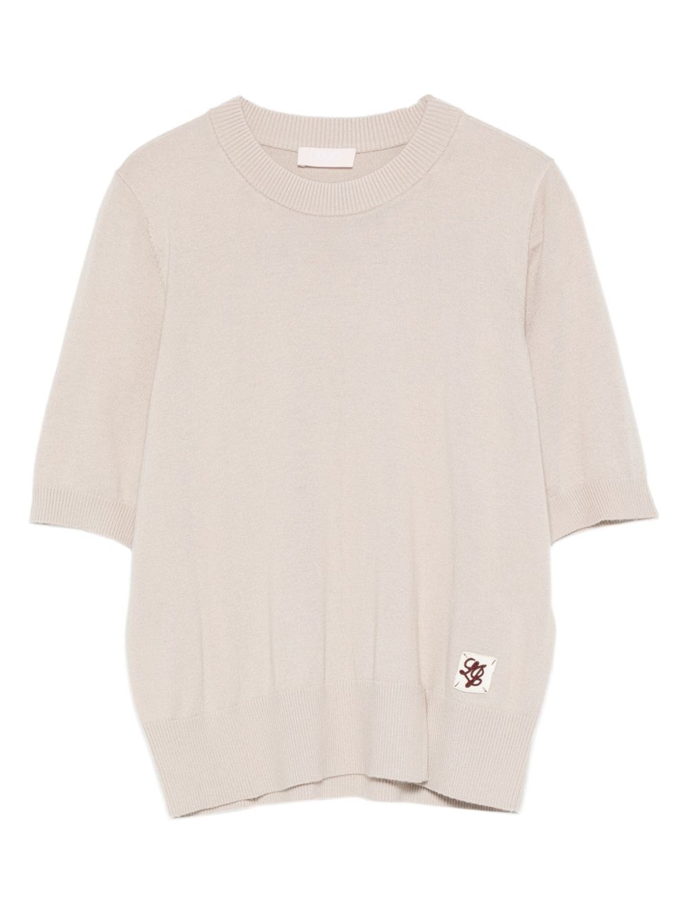 Realizzata in misto lana, collo e fondo a coste, mezza manica, applicazione logo, motivo cut-out sul fondo, 35% lana, 35% viscosa, 30% poliammide