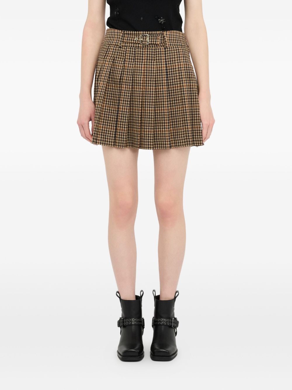 Realizzata in misto poliestere, trama a quadri, pieghe, fibbia davanti, patch logata ricamata dietro, 64% poliestere, 34% viscosa, 2% elastam