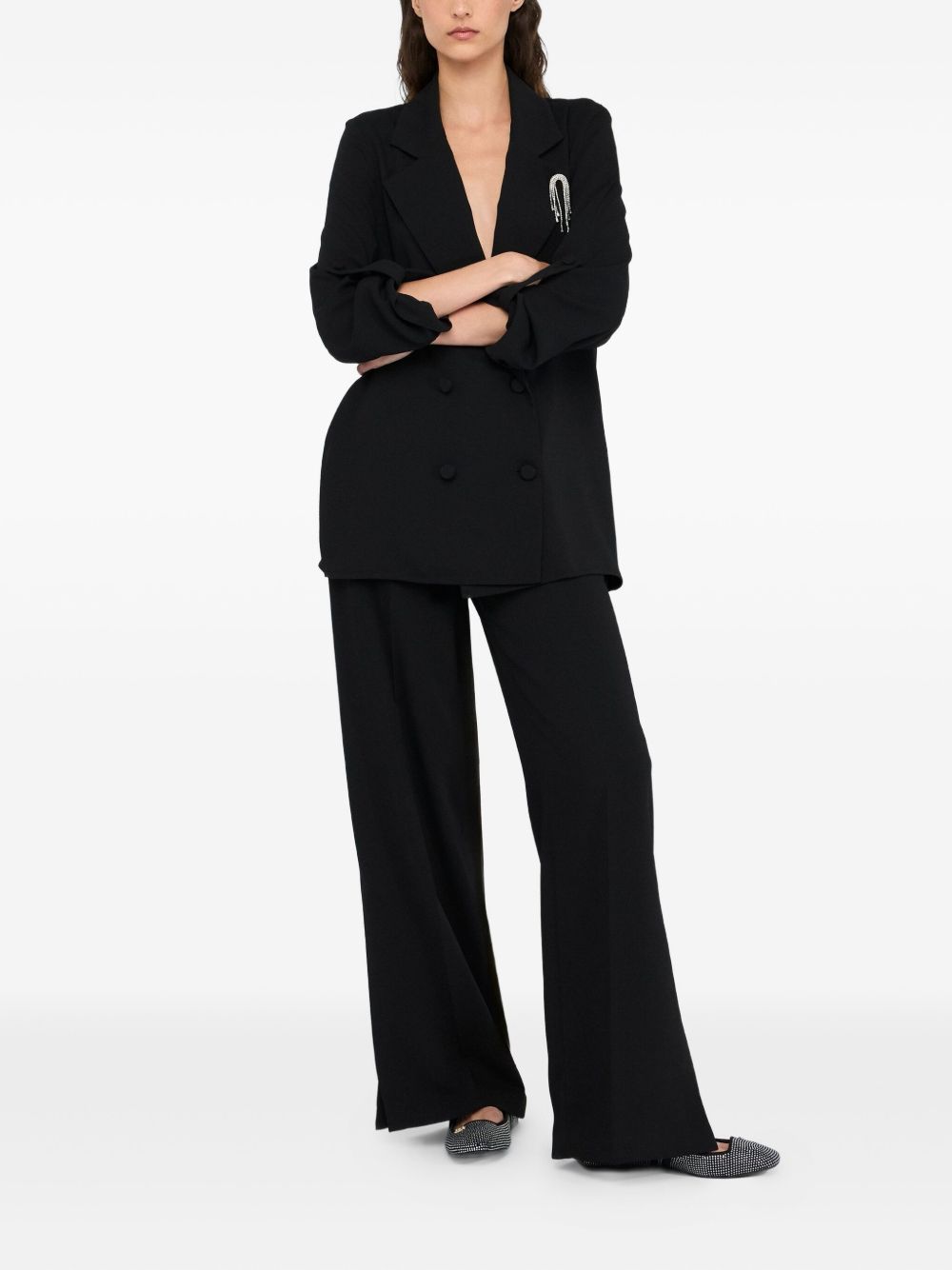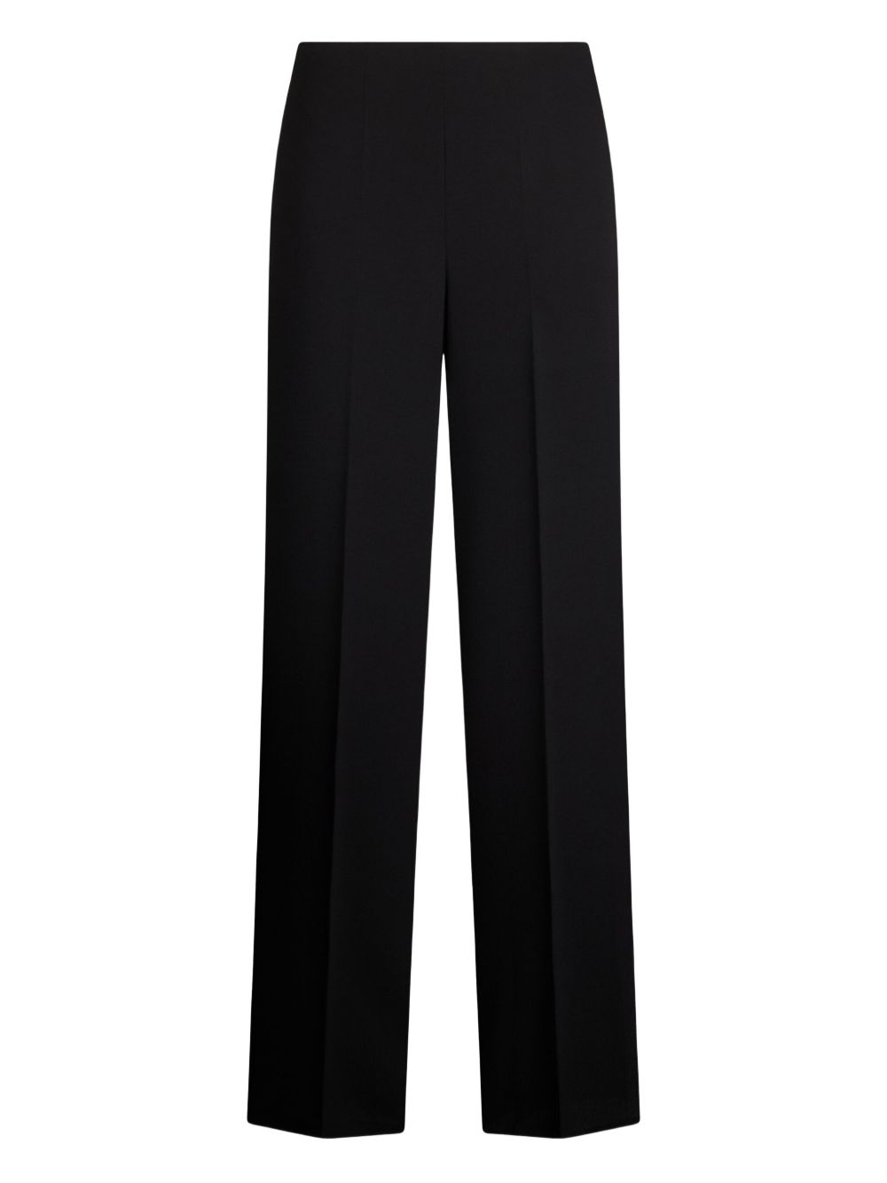 Realizzato in poliestere, vita alta, chiusura laterale con cerniera nascosta, spacchetti in fondo ai lati, tasca a filetto dietro, 100% poliestere