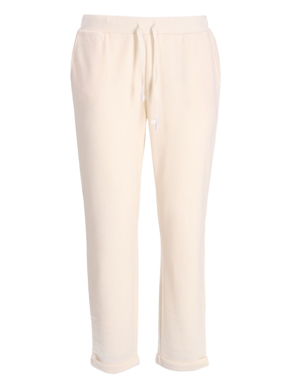 Realizzati in cotone, due tasche davanti, vita elasticizzata con coulisse, risvolti in fondo.