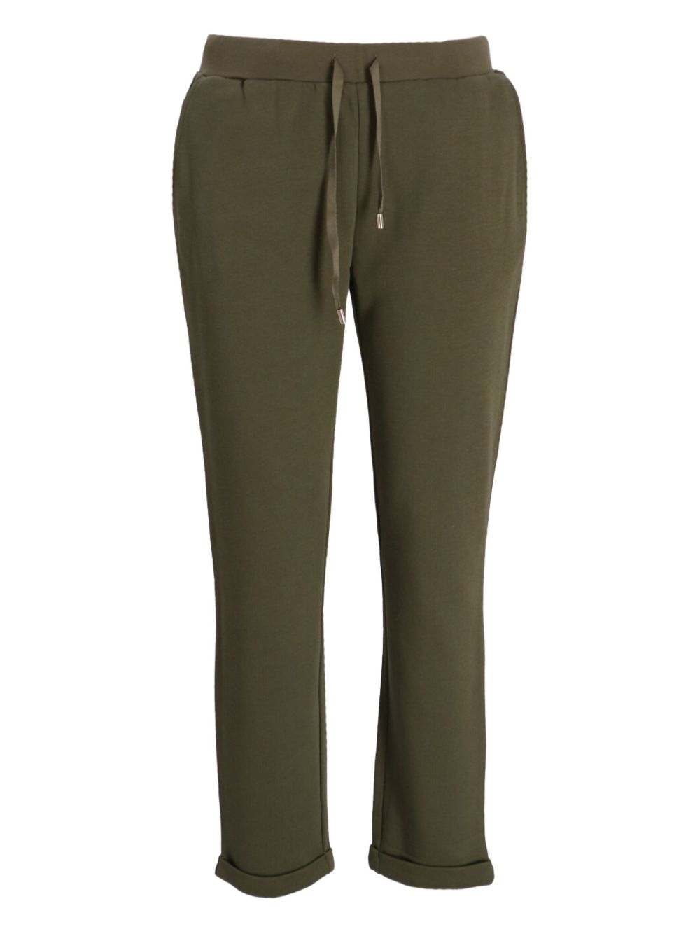 Realizzati in cotone, due tasche davanti, vita elasticizzata con coulisse, risvolti in fondo.